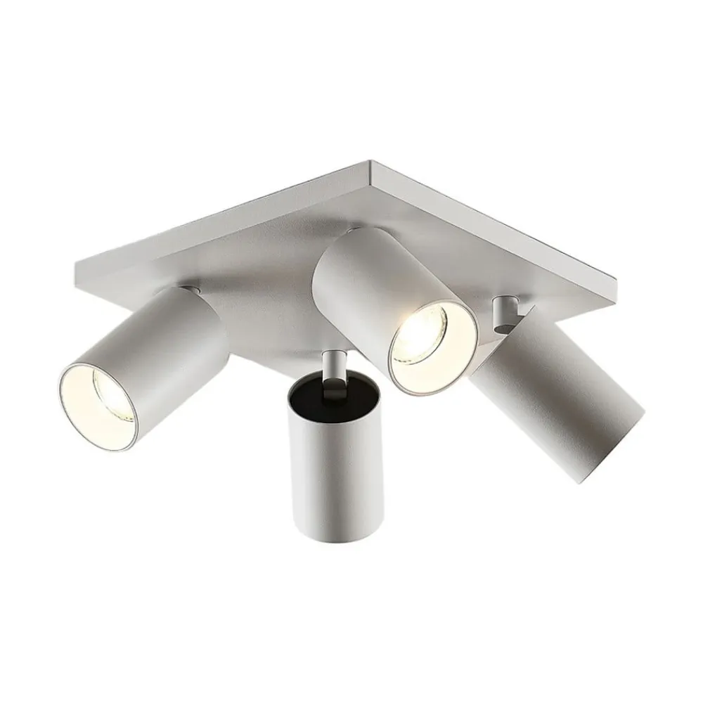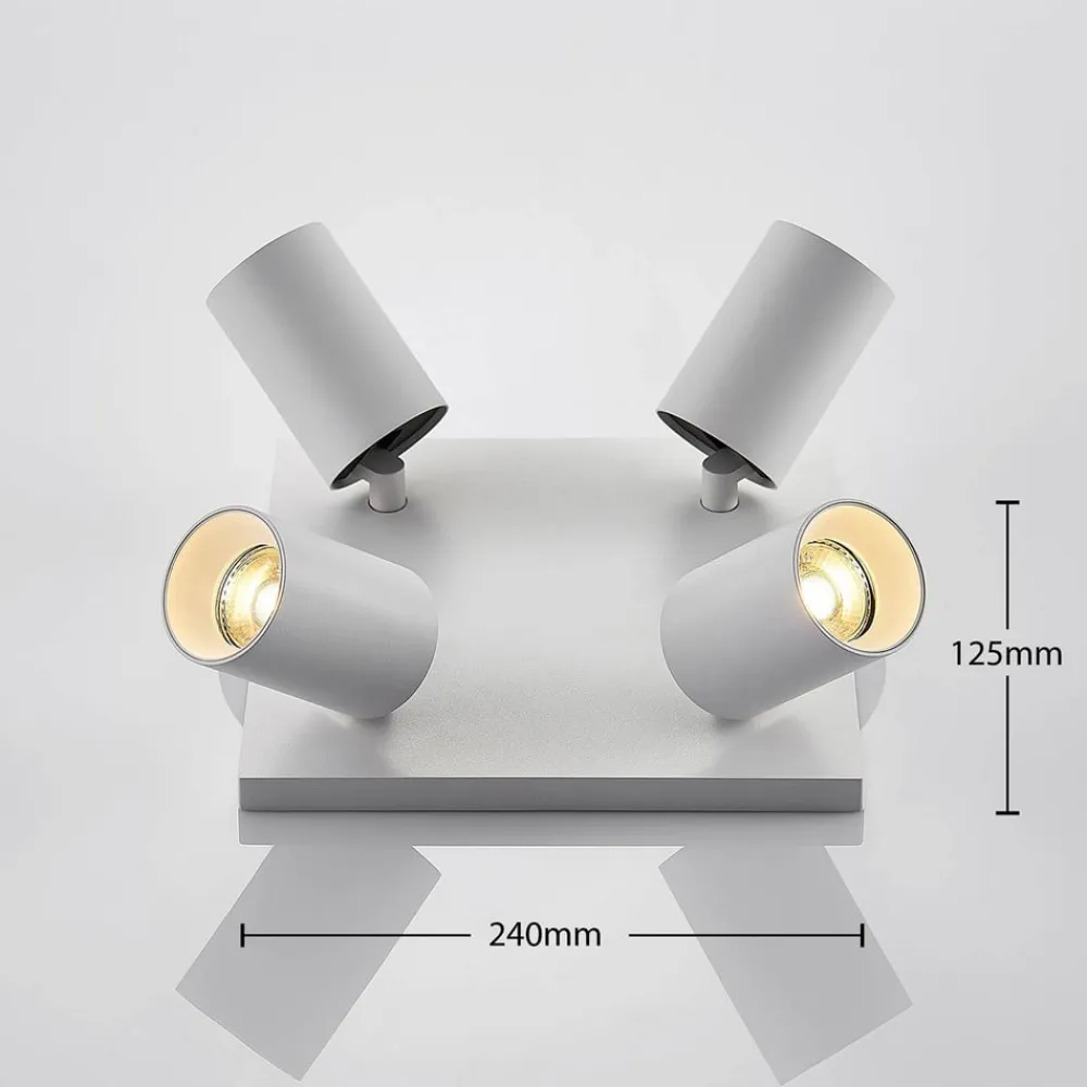 Med sine fire lyse spotlight sikrer den hvide lampe Brinja ideelle lysforhold – også i store rum. Spotlights kan drejes 350 grader hver for sig og vippes 90 grader, så alle fire hjørner af et rum kan belyses efter ønske.