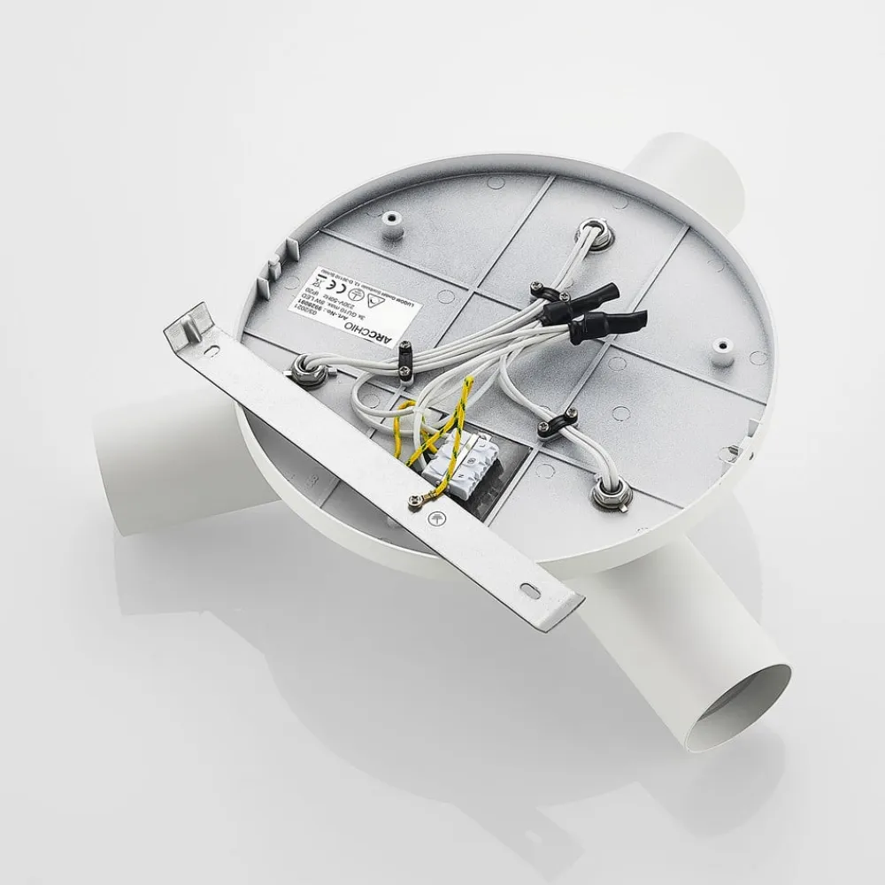 Denne smukke loftspot giver god belysning takket være sine tre lyskilder, der kan rettes i forskellige retninger. De kan vippes 90 grader og drejes 350 grader. Det er op til brugeren at vælge de passende GU10-pærer. Der medfølger desuden hvide og sorte dekorringe til spottene.