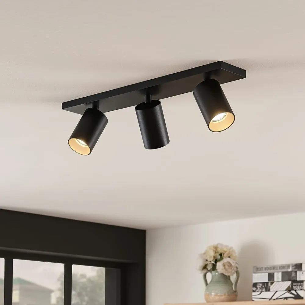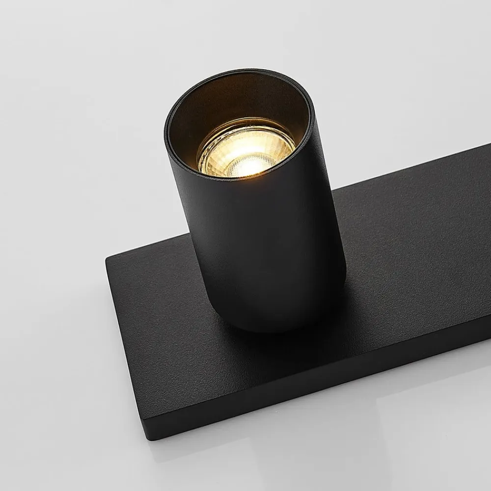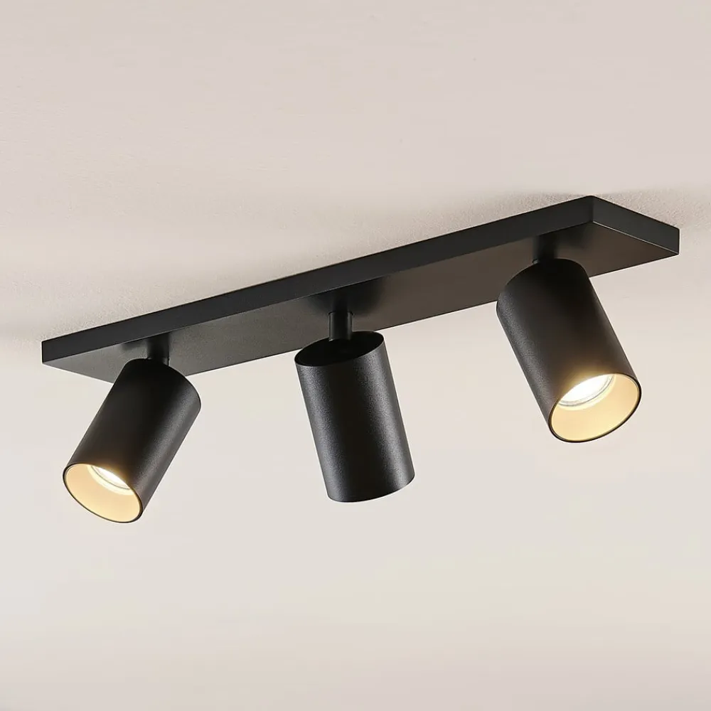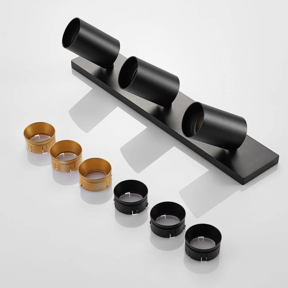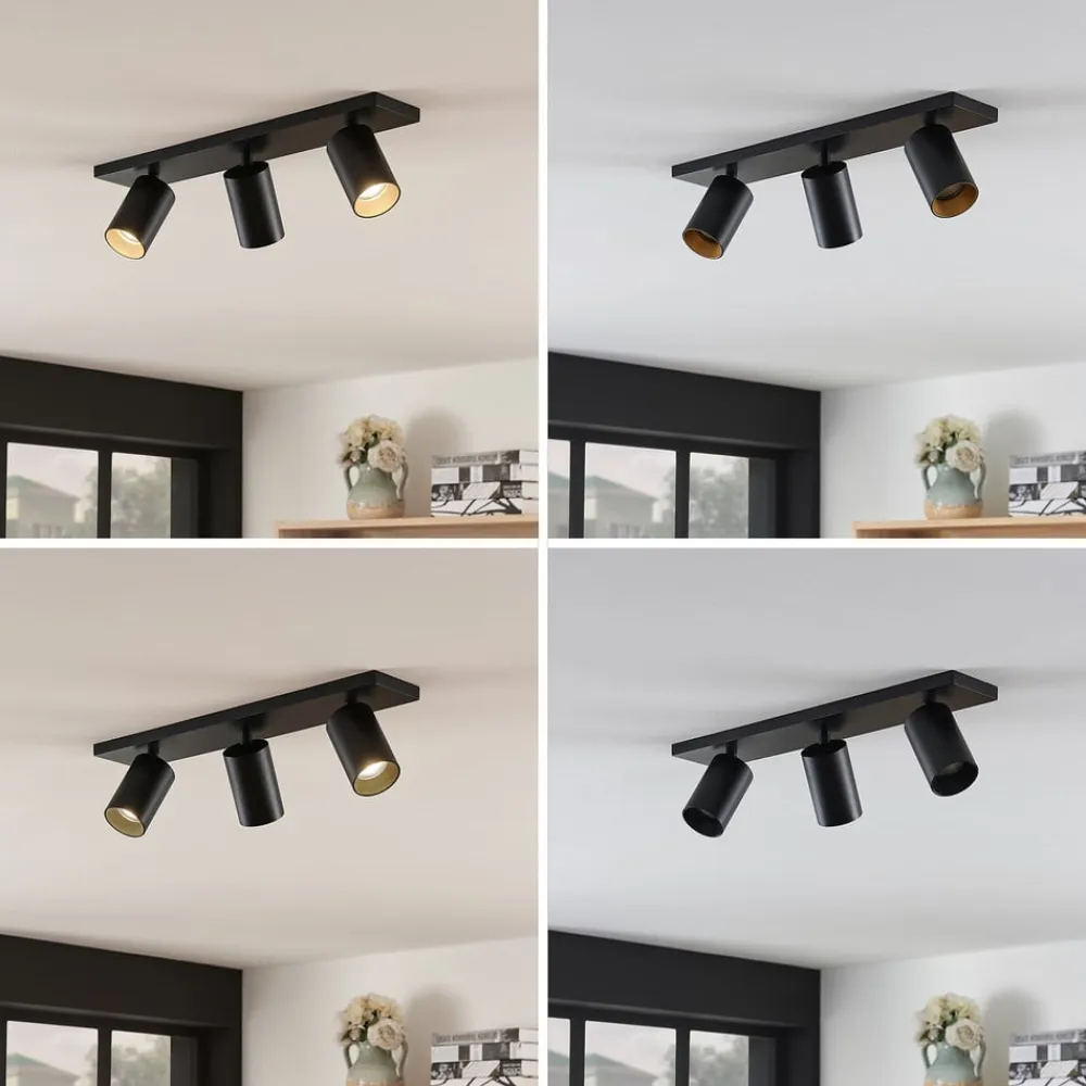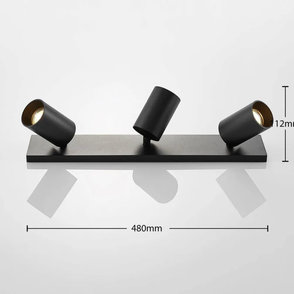 Sort aluminiumsspotlight Brinja i 2-pak Den sorte lampe af højkvalitetsaluminium Brinja består af tre cylindriske spotlights, der alle kan vippes 90 grader og drejes 350 grader. Spotlightsene er monteret på et rektangulært beslag, som kan fastgøres til loftet eller væggene. De tre kraftige spotlights kan også bruges til at belyse store, vinklede rum optimalt. Spotlightsene kan justeres efter behov for at oplyse forskellige dele af et rum med deres atmosfæriske lys. Brinja fås i en dobbeltpakke i dette tilbud.
