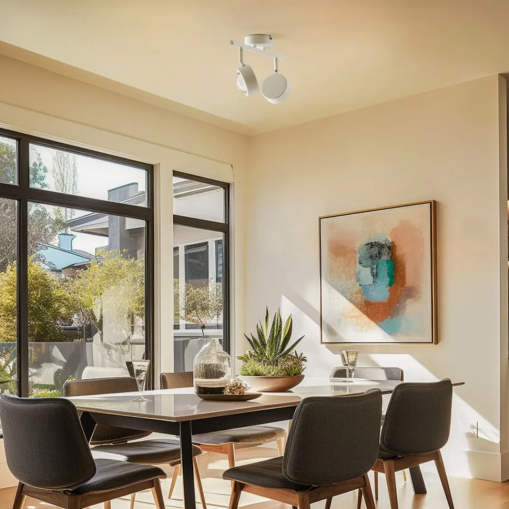 Hvid Jyla-spotlight med drejelige skærme, dæmpbar Jyla-loftspotten med to lys er lavet af jern og giver omgivelserne et sofistikeret præg med sit hvide ydre. Samtidig passer den ubesværet ind i forskellige boligområder takket være sit diskrete design. Den er f.eks. ideel som lyskilde i entreen, køkkenet, stuen eller spisestuen. De runde skærme kan justeres, så lyset kan tilpasses, og rummet kan belyses optimalt. De medfølgende GX53-lyskilder har en buet linse og ligner derfor halvkugler af glas. En vægkontakt gør det muligt at tænde og slukke lyset som normalt. Takket være 3-trins dæmpningsteknologien med integreret slukkefunktion kan den også dæmpes til tre forskellige lysstyrkeniveauer ved at trykke på kontakten flere gange: 100 %, 50 % og 25 %.