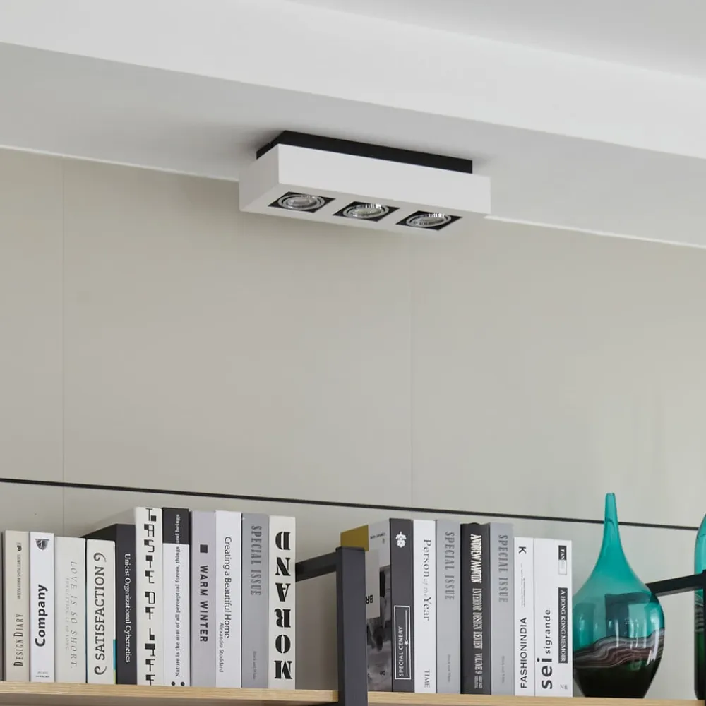Vince kantet loftlampe med hvid overflade og justerbare indsatser Aflang i formen, kan monteres med tre GU10-lamper, Vince loftlampen er velegnet til mange anvendelser og opnår et passende lysniveau. Hver pæreindsats kan drejes efter behov, så lysets retning kan ændres. Metalrammens hvide finish skaber en særlig tidløs kvalitet – med skrueløs lynkobling af høj kvalitet (holdbar, sikker og værktøjsfri fjedermekanisme)