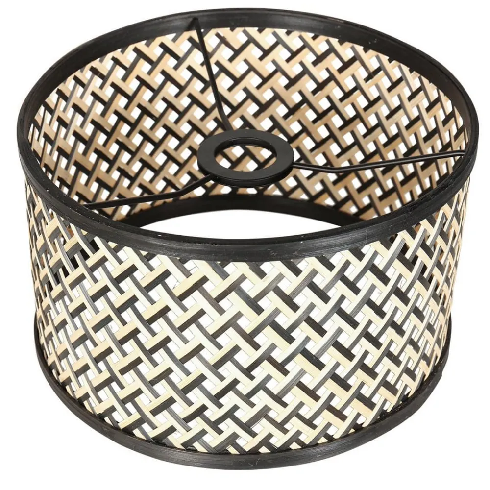 Stang gulvlampe, LED-læselampe, sort/naturlig fletværk