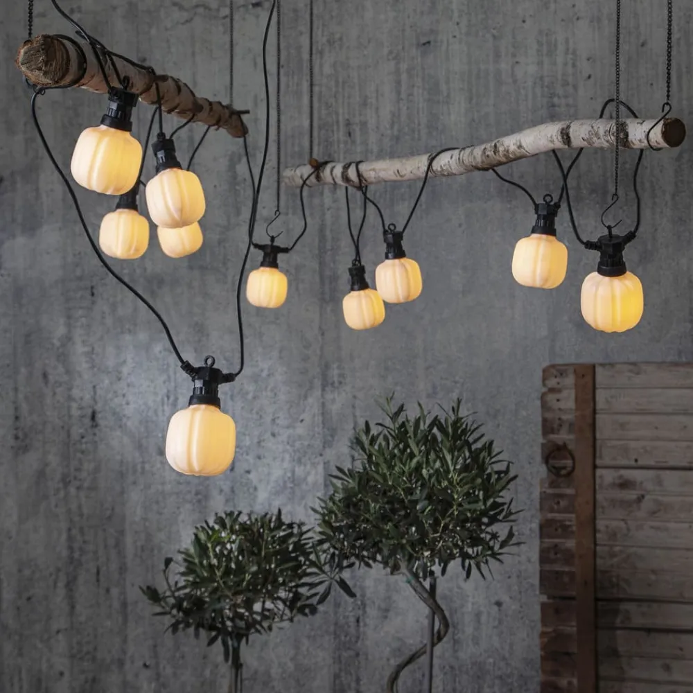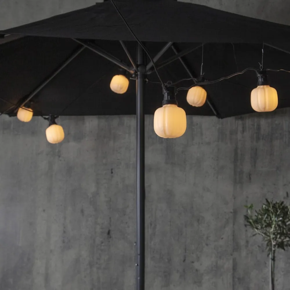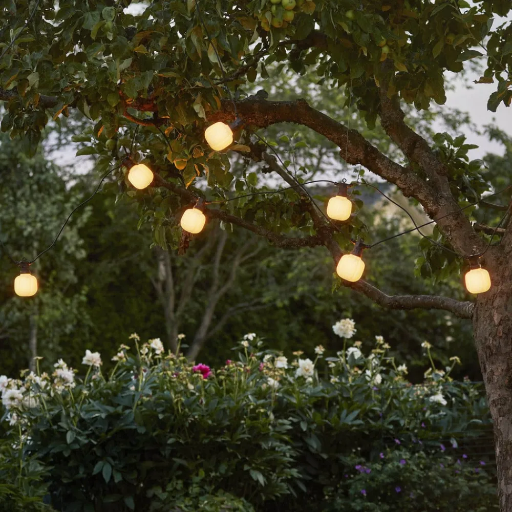 Circus Maxi er en meget speciel lyskæde med ti usædvanligt formede lamper i matteret design. De er placeret med 50 cm mellemrum langs det sorte kabel og udsender varmt hvidt lys. Til stemningsfuld belysning af en fest eller generelt til udsmykning af et udendørs område – Circus Maxi lyskæden giver altid en stemningsfuld detalje. Takket være øskenerne på bagsiden kan den fastgøres på ingen tid.