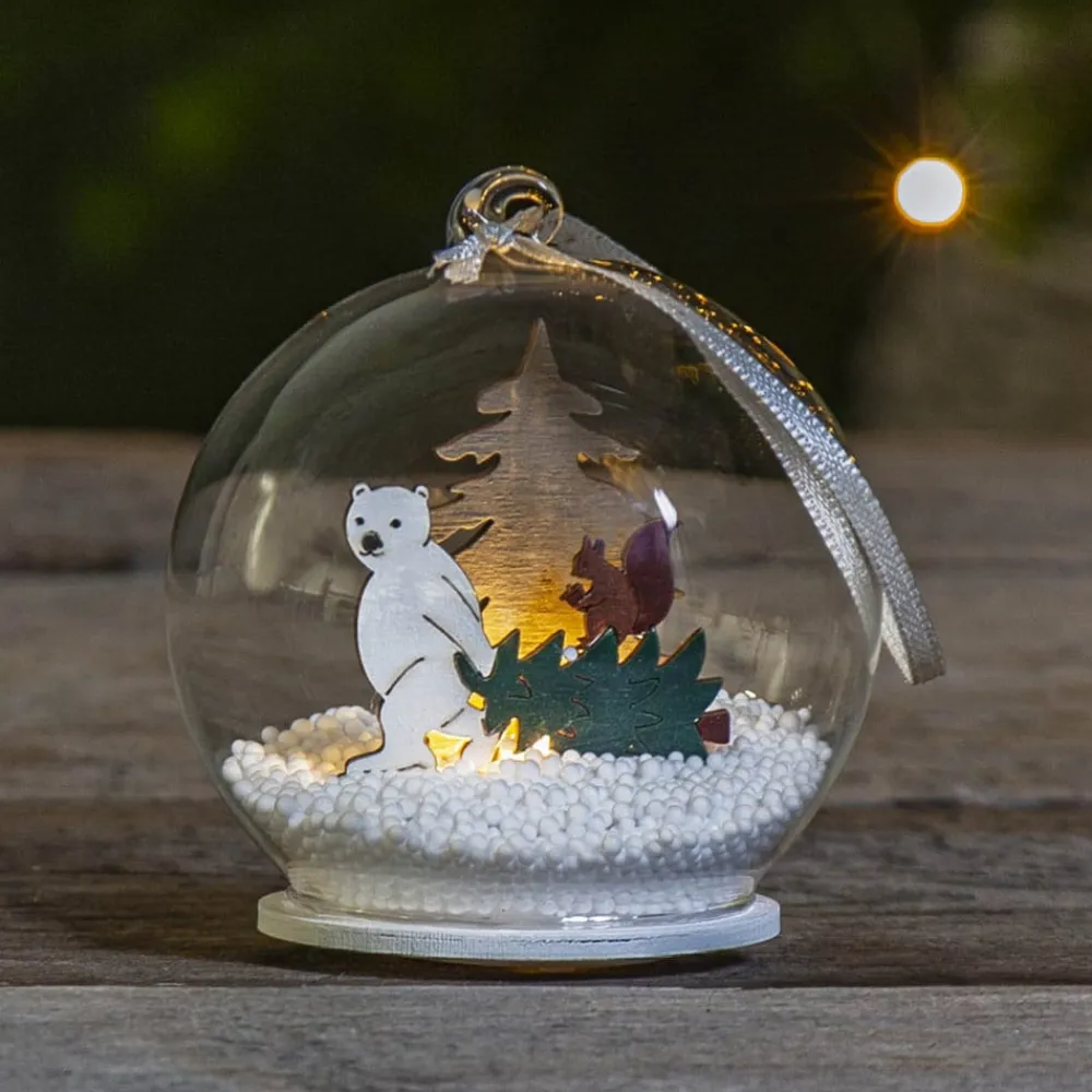 Forest Friends LED-glaskugle, isbjørn med træ