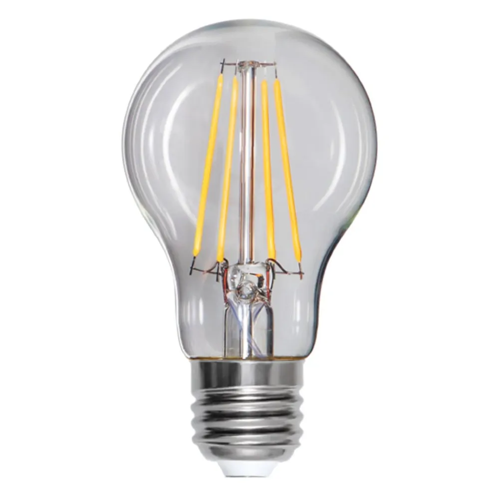 Denne E27 LED-pære er udstyret med en klar glaskappe i klassisk pæreform. Indvendigt findes LED-filamenter, der producerer varmhvidt lys. Kan ikke dæmpes.