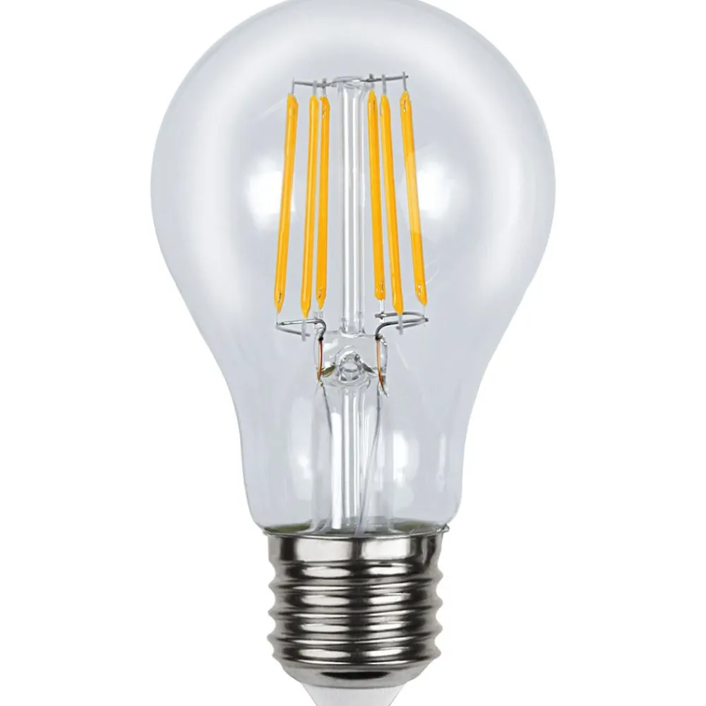 Lavspænding E27 LED-pære, 3,5 W, AC/DC 12-24 V, varmhvid, filament-look og klart glas