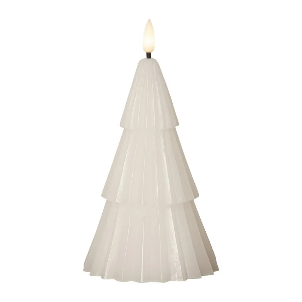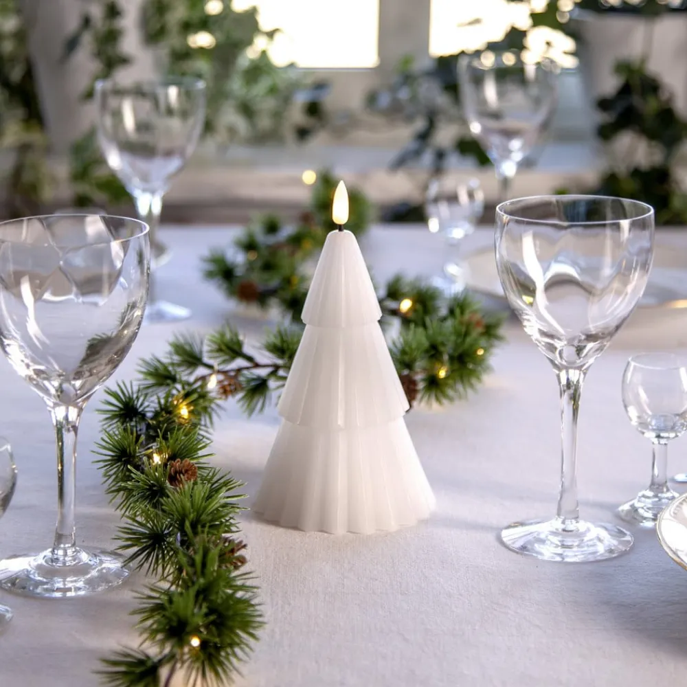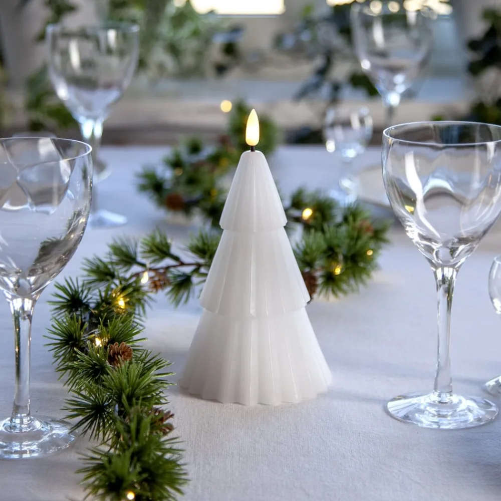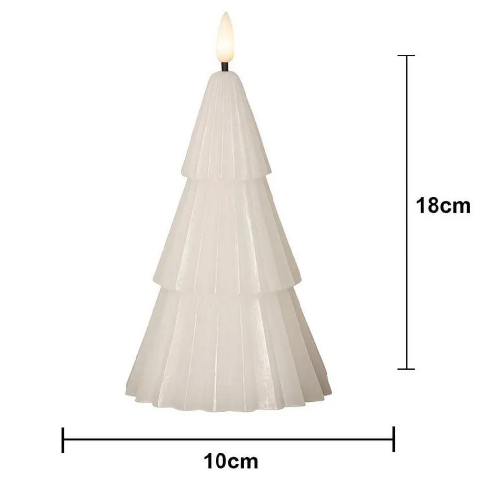 Batteridrevet LED-dekorationslys Flamme Grany lavet af voks til indendørs brug – med timerfunktion Flamme Grany LED-lyset er et praktisk valg til juledekorationer i hjemmet. Dekorationslyset er lavet af ægte voks og designet i den stiliserede form af et nåletræ. Det kan placeres hvor som helst takket være batteridriften. Det kan tændes automatisk ved hjælp af en timer (6 timer tændt, 18 timer slukket).