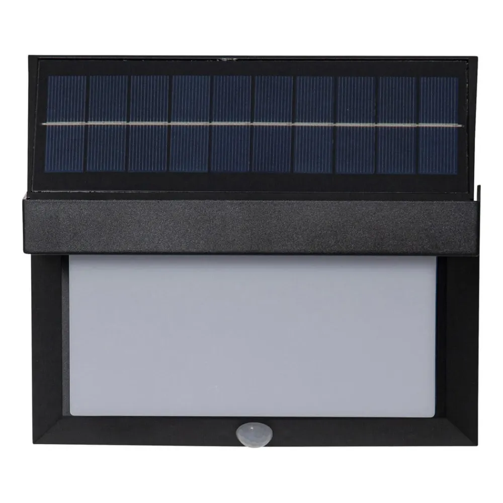LED-solcellelampen Valla er sort og har en kantet, hvid diffusor, der spreder lyset uden at blænde. Over diffusoren er et integreret solpanel, der oplader de indbyggede batterier med solenergi og giver dem en lysvarighed på op til 6 timer i mørke. Takket være den trådløse montering kan Valla placeres fleksibelt i solområdet på husets facade eller i indgangen til huset og terrassen. Panelet kan også justeres, hvilket giver endnu mere fleksibilitet.