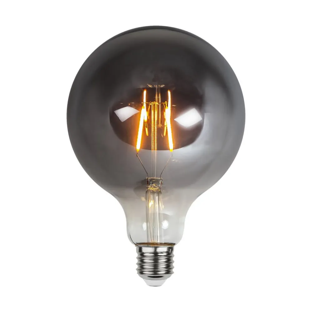 Røggrå tonet LED-glaslampe G125 “Plain Smoke”, E27 med 1,8 W, 80 lumen, 2.100 K