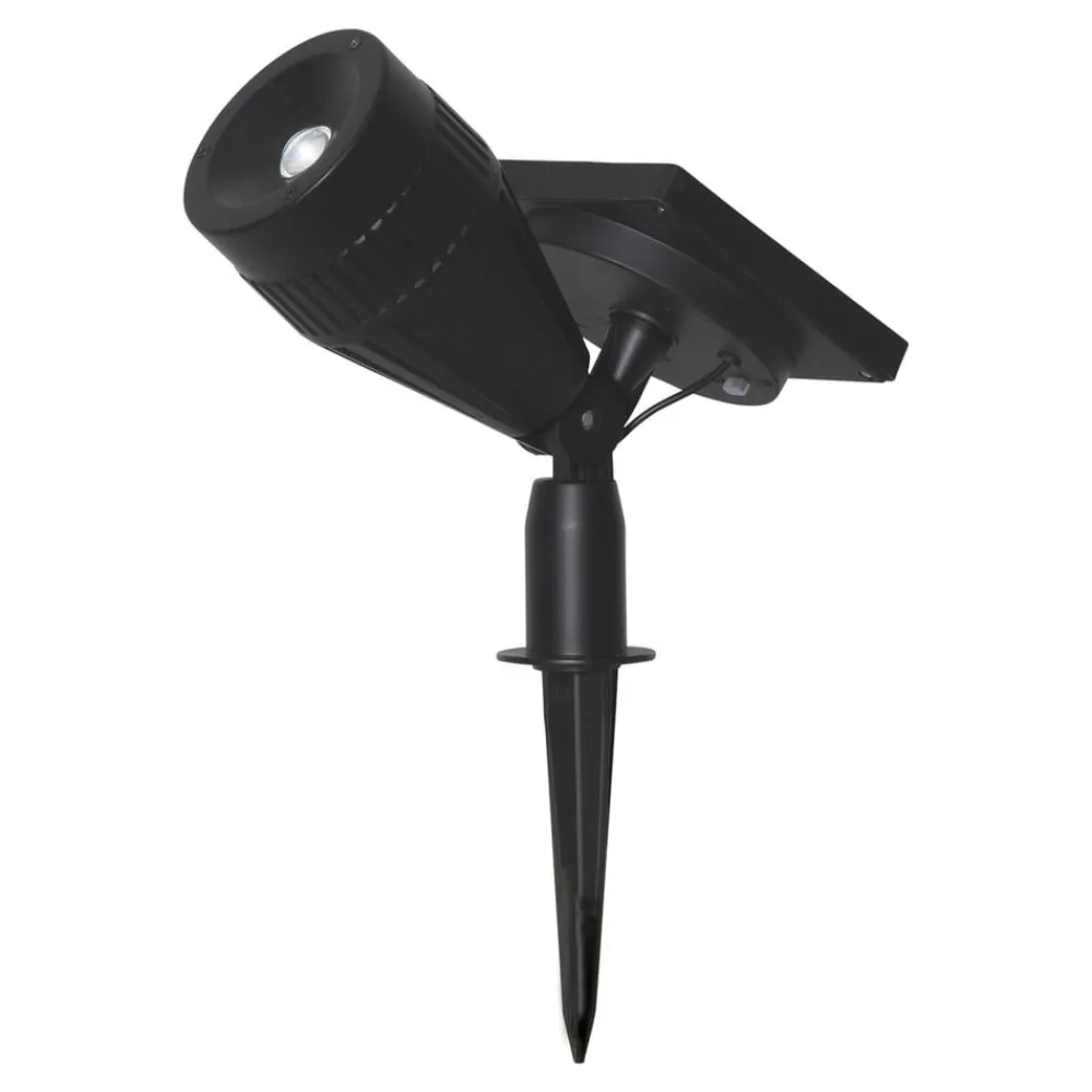 LED-solcellelampen Powerspot kan takket være det justerbare panel til spotten enten skabe en bred lyskegle til et stort område eller en målrettet koncentreret lyskegle. Dermed leverer den altid den ønskede belysning og kan også altid tilpasses de pågældende krav med ændrede modstående sider. Solcellemodulet er bevægeligt monteret på jordspyddet, så det kan justeres i en optimal vinkel til solen. Der medfølger et genopladeligt batteri ved levering.