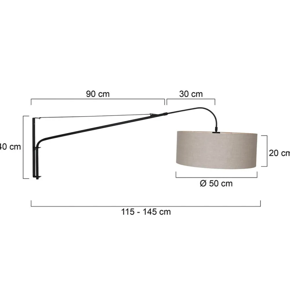 - højde vægbeslag 40 cm; skærm – Ø 50 cm, højde 20 cm