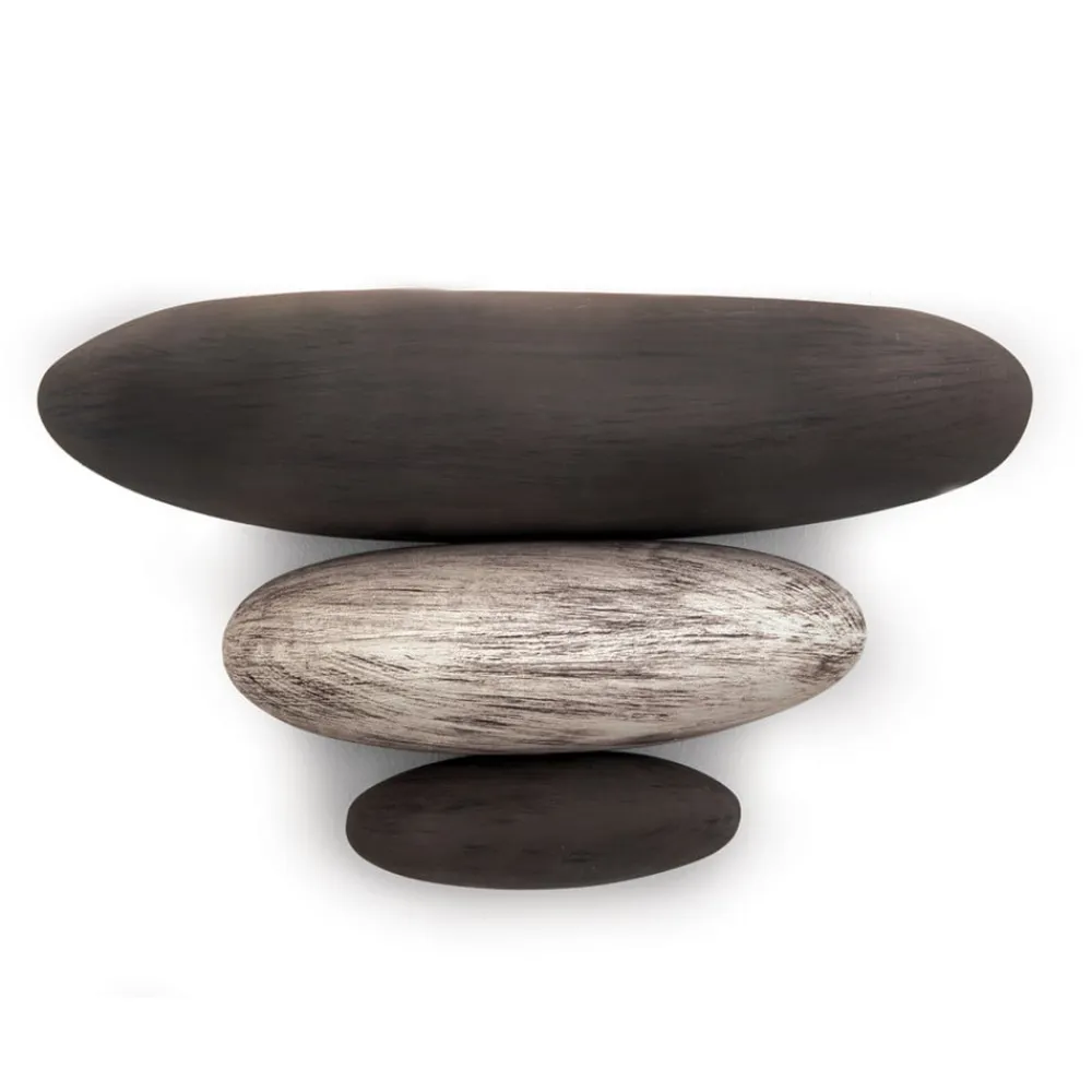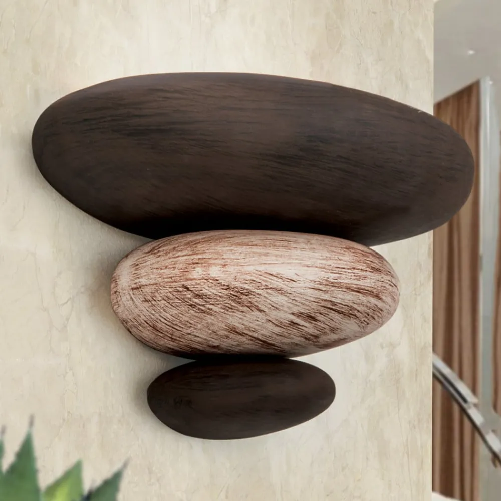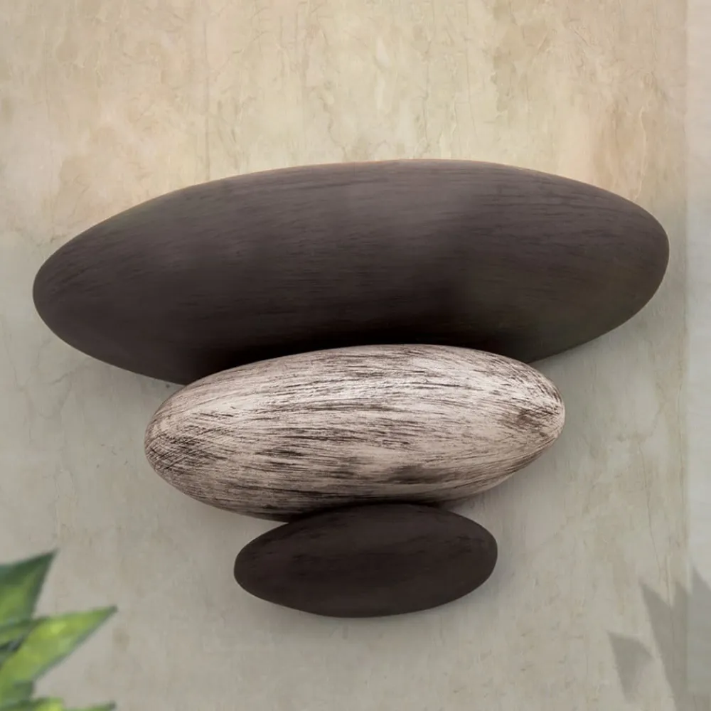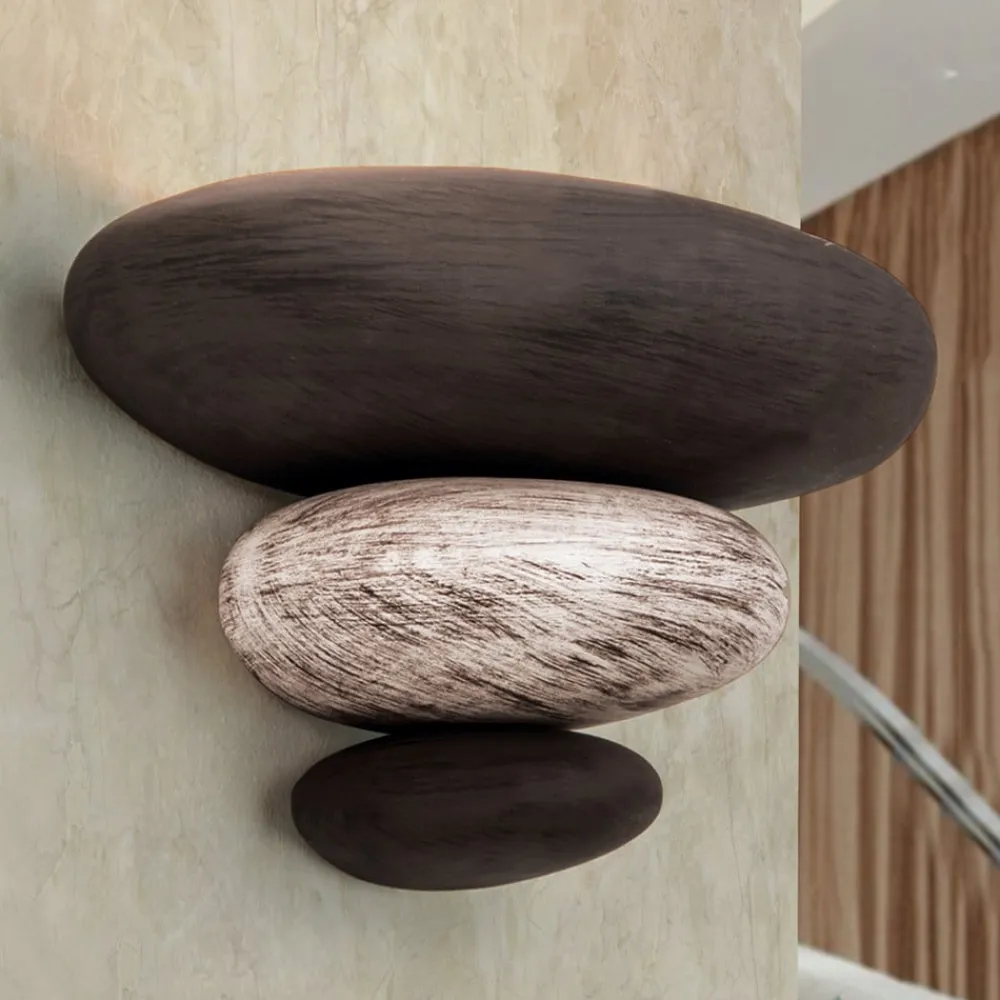 LITICA væglampe giver indirekte lys Det ser ud, som om en sten er blevet placeret oven på en anden. Den starter med en lille keramisk sten, og de to andre bliver større og større op mod loftet. Et helt igennem naturligt design, der kan skabe en særlig accent i opholdsrum. Det faktum, at lyset spotlightes mod loftet, skaber en særlig hyggelig og stemningsfuld belysning.