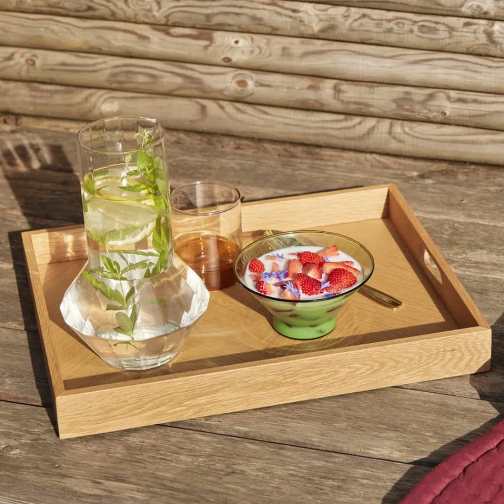 Rektangulær bakke i egetræ Structures bakke er et alsidigt og elegant valg til din hverdag. Bakken er fremstillet af FSC-certificeret egetræ, er holdbar og har et karakteristisk og naturligt udseende. Den er et unikt, men underspillet tilbehør i dit hjem, uanset om det er i stuen, soveværelset eller køkkenet. Det er en stilfuld tilføjelse til hver dag.