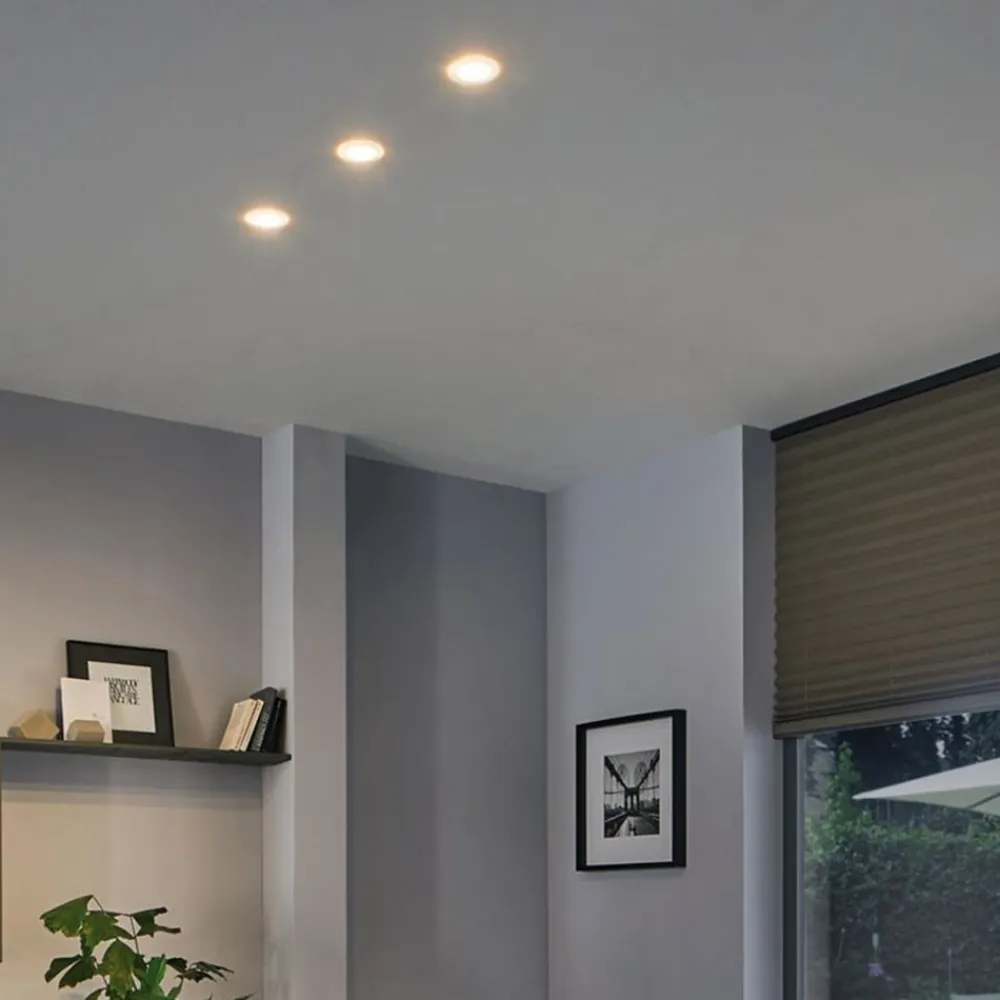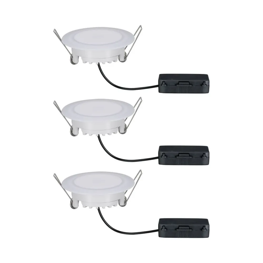 Det rammeløse Suon LED-indbygningsarmatur af plast har en hvid satineret overflade, der giver et blændfrit og homogent lys og badet rummet i et varmt hvidt lys. Når den er slukket, ser den ud til at smelte blødt sammen med loftet, hvilket gør den meget harmonisk. Takket være IP44 er den beskyttet mod stænkvand. Suon leveres i et praktisk sæt med 3 stk. og kan også reguleres i lysstyrke med udvalgte lysdæmpere.