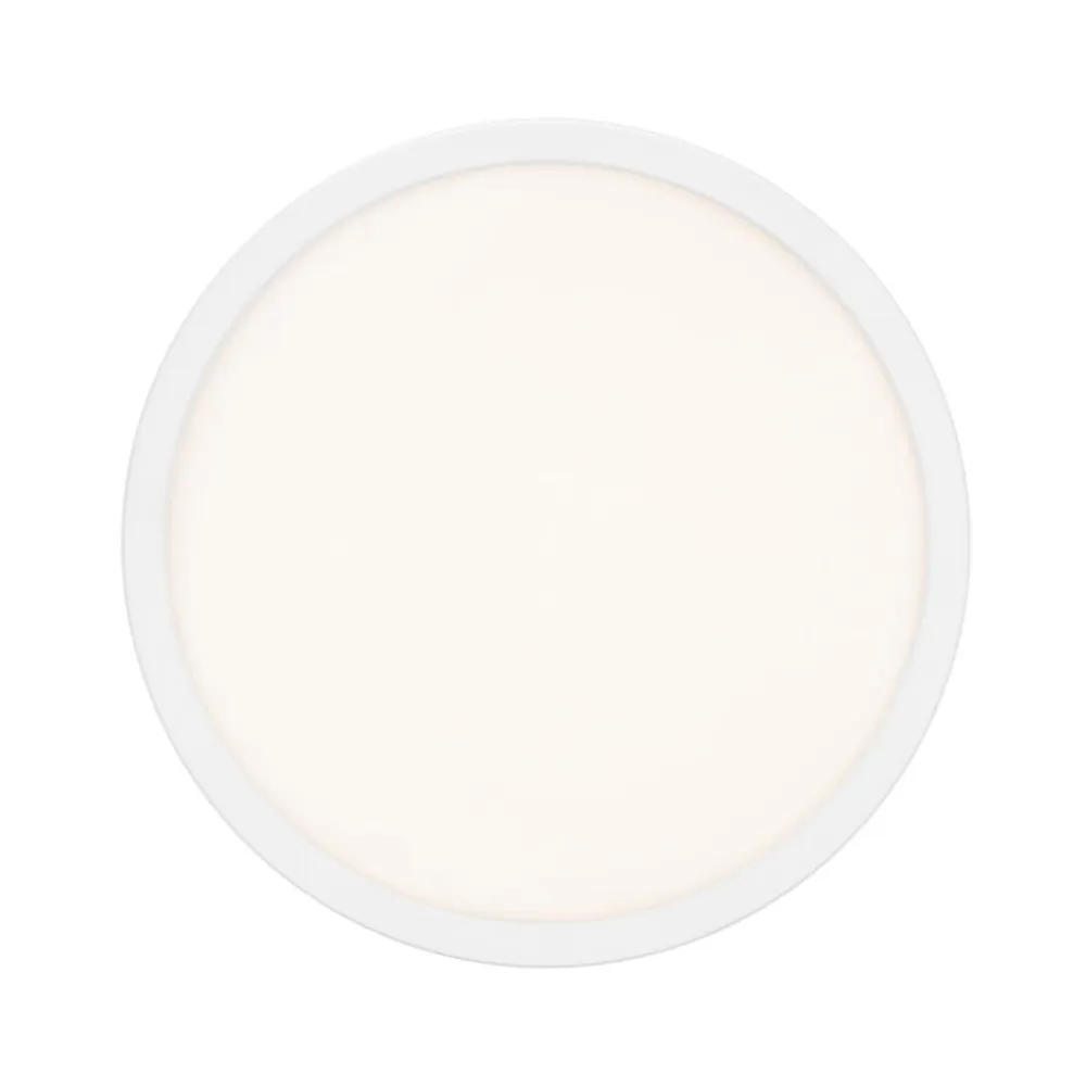 SylRadiance rund LED-loftlampe – generel belysning i store områder, dæmpbar via vægkontakt LED-loftlampen SylRadiance er en alsidig lyskilde til stuer og opholdsrum. Den er lavet af PMMA-plast i et neutralt design – rund, flad og hvid. Den integrerede LED-lyskilde giver et varmhvidt lys, der fungerer som almenbelysning i store områder og også skaber en glorieeffekt, der visuelt adskiller armaturet fra baggrunden. Stænkvandsbeskyttelsen muliggør også brug i fugtige rum og badeværelser – Justerbar via vægkontakt i tre effektniveauer: 100 % / 50 % / 10 % – Ophængssæt til brug som pendellampe fås separat – Kapslingsgrad: IP54 (loftsmonteret) / IP20 (pendelmonteret)