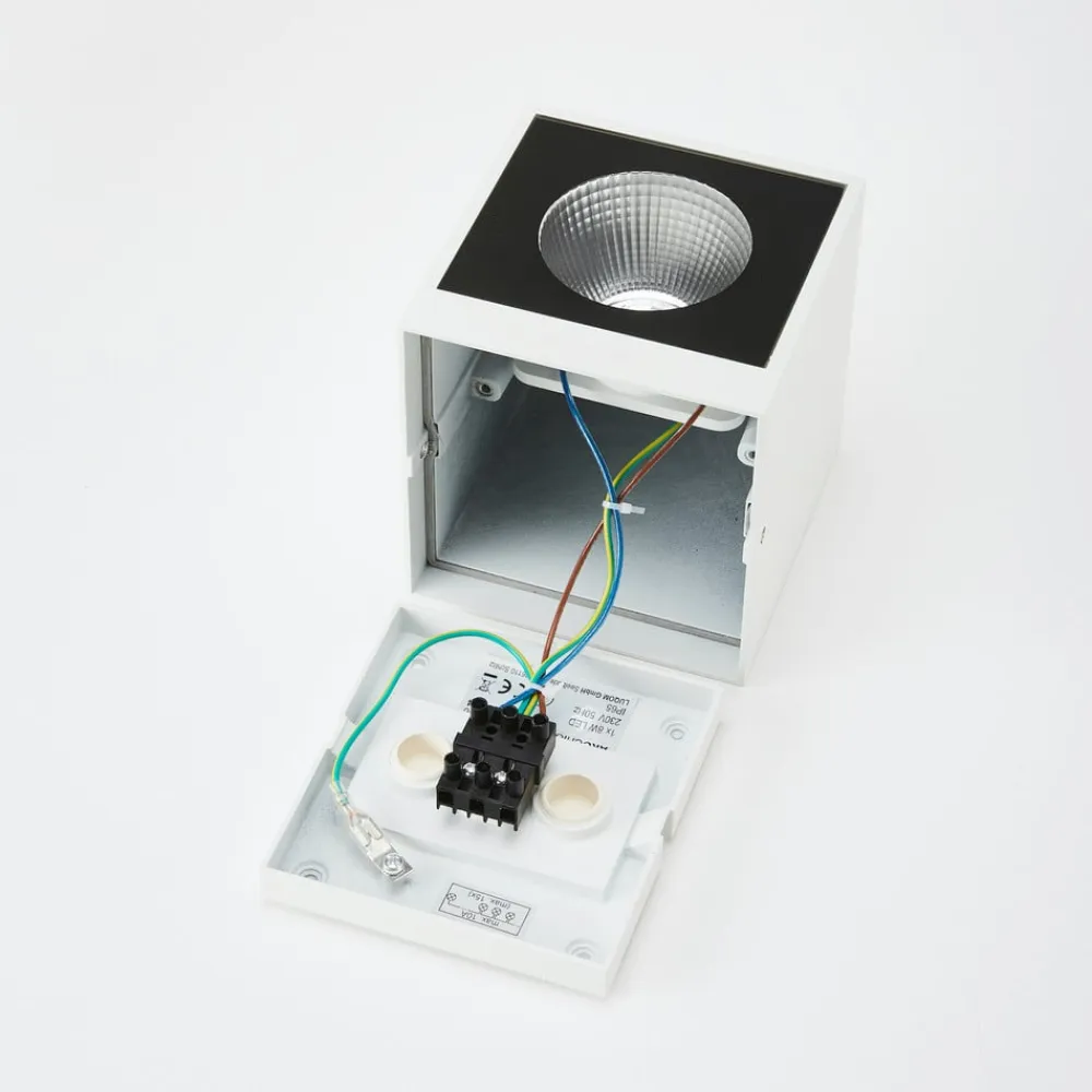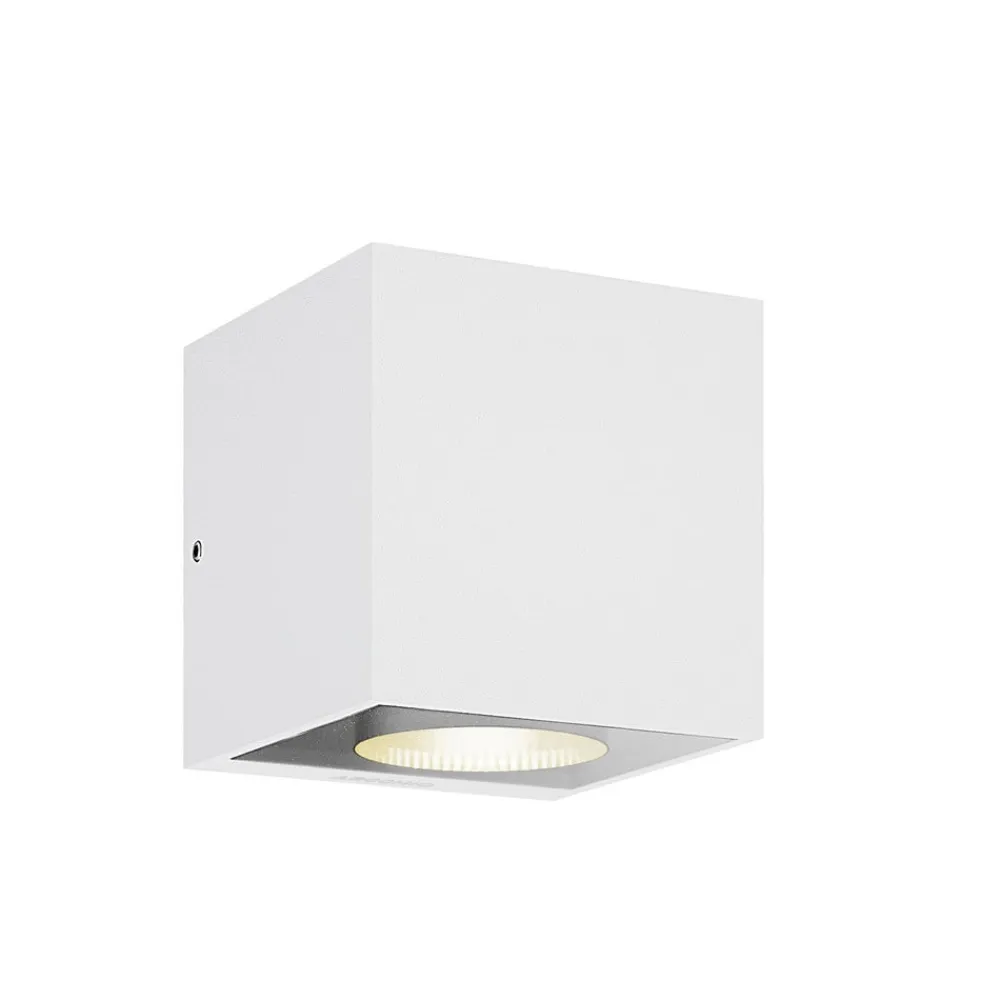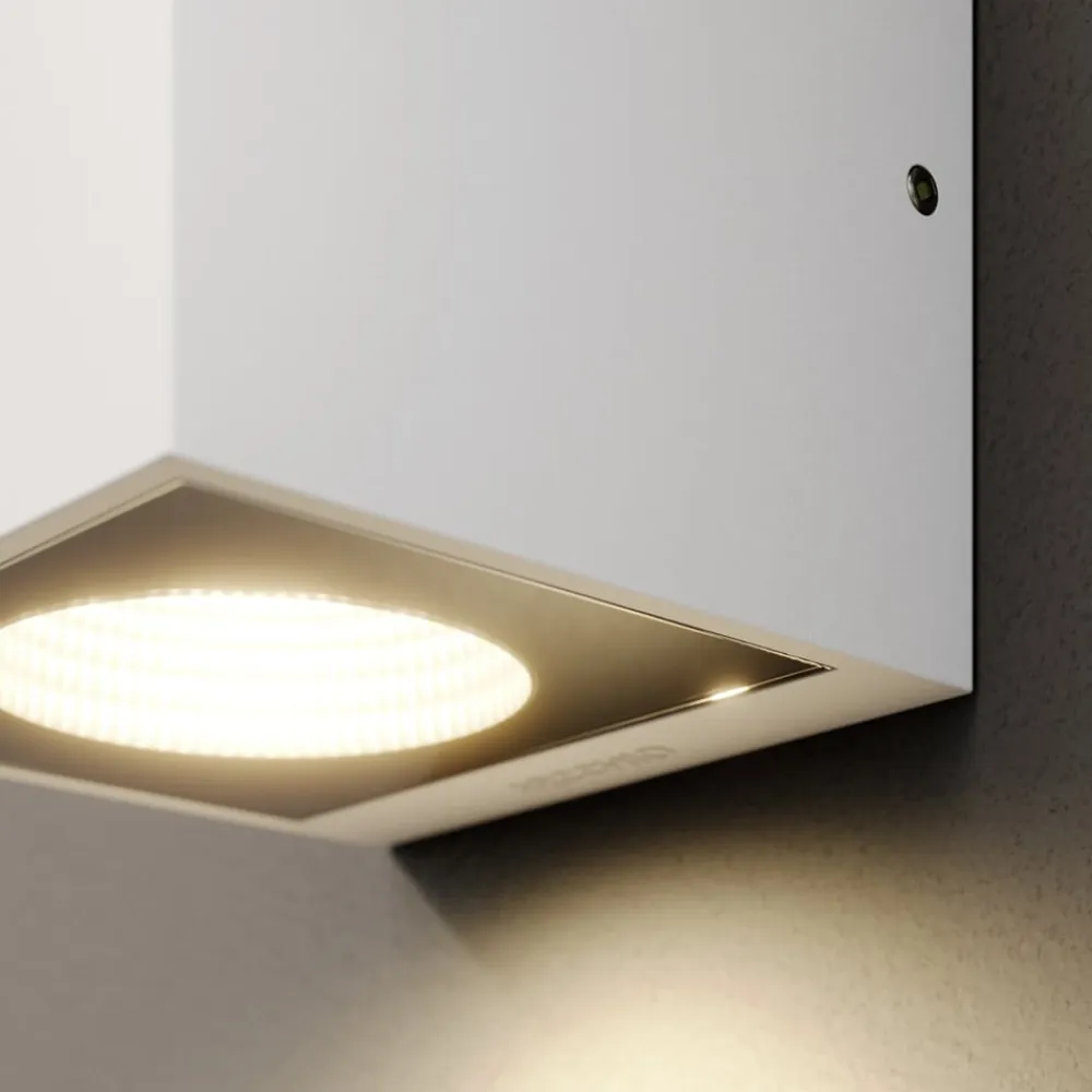 Terningformet LED udendørs væglampe Tassnim i hvid aluminium