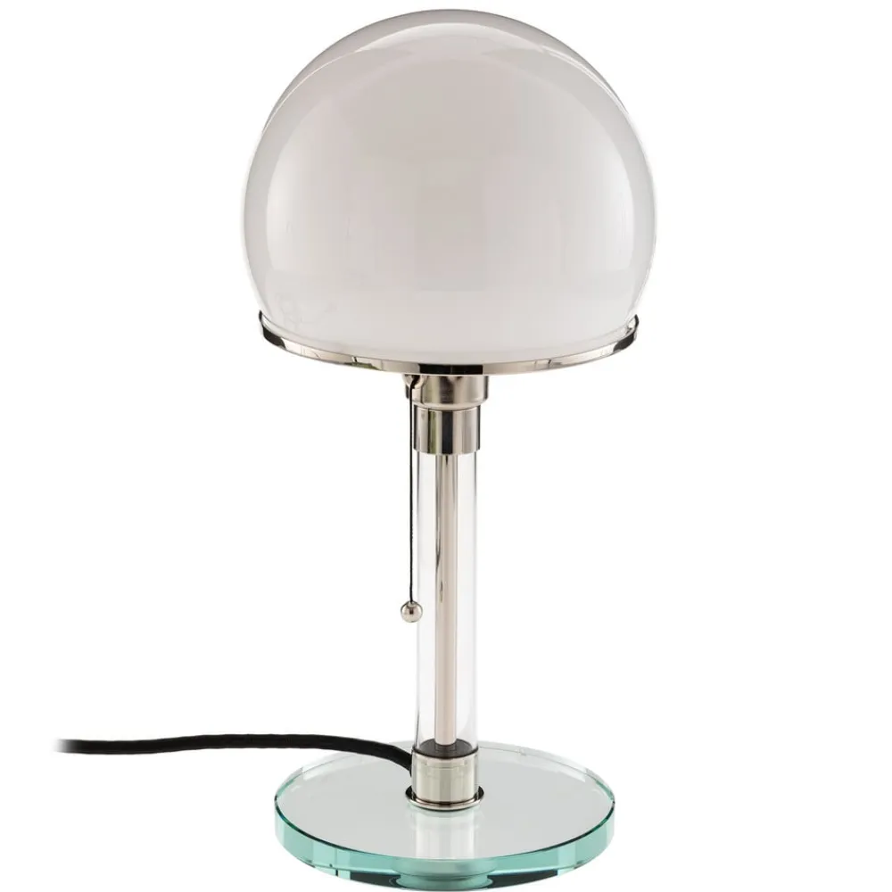Denne bordlampe forener tysk historie og moderne håndværk: Resultatet er et ægte pragtstykke. Denne relancering er den eneste licenserede i hele verden. Ægtheden kan klart identificeres ved hjælp af en række kendetegn: Efter udkastet fra Bauhaus-designeren professor Wilhelm Wagenfeld blev denne bordlampe udviklet med en mundblæst skærm af opalglas og en forniklet metalkant med en diameter på 18 cm og en glasfod. Den tændes og slukkes med den sorte træksnor. De forniklede små kugler, der sidder på enden af snoren, er præcis lige som Wilhelm Wagenfeld opfandt dem. Fatningen er udviklet nøjagtigt afstemt til denne lampe og har den karakteristiske tud. Metalstanderen er omgivet af glas, som er direkte baseret på Wagenfelds oprindelige tegninger. Lampens overflade er forniklet, lige som det er tilfældet på Wagenfelds design fra 1924. Med tiden dannes en typisk patina. Den elektriske strømledning består af et sort stofkabel. Bordlampen udsender et flatterende lys og kan betjenes med LED- og energisparepærer. Alle lamper i denne serie er nummereret fortløbende og forsynet med stemplet for virksomheden Tecnolumen, hvilket yderligere verificerer ægtheden.