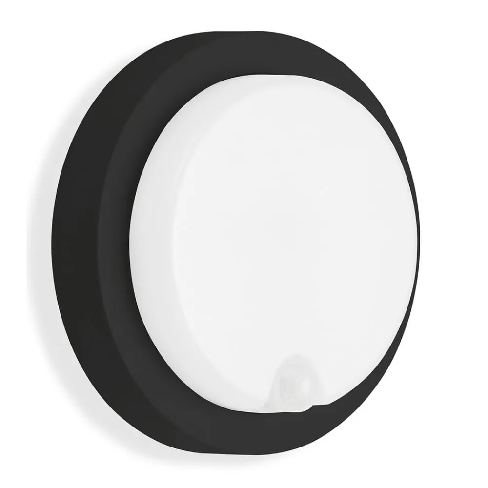 Dortmund rund LED udendørs væglampe med sensor, neutralt design Dortmund LED udendørs væglampe af robust plast er en diskret, alsidig lyskilde til facaden eller indgangspartiet. Den hvide diffusor er monteret foran det runde vægbeslag, som spreder det universelle hvide lys fra de indbyggede LED’er over et stort område. Dagslys- og bevægelsessensoren er placeret i bunden af diffusoren, som automatisk tænder lyset, når mørket falder på, og der registreres bevægelse – Beskyttelsesklasse: IP44 – Skumringstærskel 5 til 25 lx – Registreringsvinkel 100°, rækkevidde 8 m – Tændingstid forudindstillet til 75 s, når der registreres bevægelse