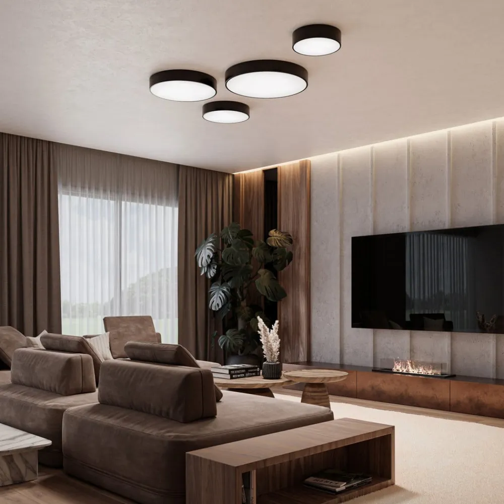 Loftlampe Cleo 600, sort, sensor, IP20, Ø 60 cm, metal^TEMAR LIGHTING New