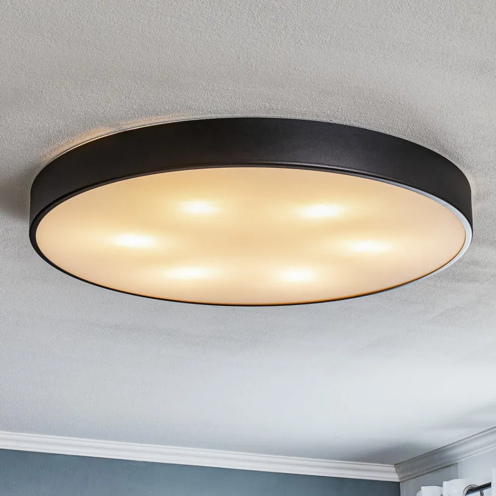 Loftlampen Cleo kombinerer stilfuldt design med funktionel belysning. Den er fremstillet af højkvalitetsmetal i elegant sort og passer perfekt ind i forskellige indretningsstilarter. Lampen er udstyret med en E27-fatning, der understøtter en lang række pærer og dermed muliggør fleksible belysningsløsninger. Med kapslingsgrad IP20 er den ideel til brug i stuer, hvor den skaber en behagelig atmosfære.