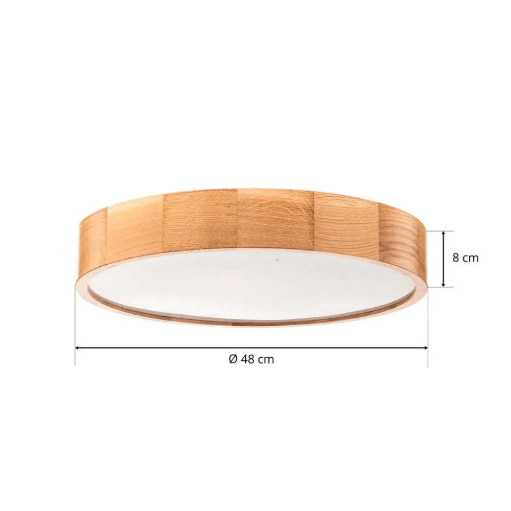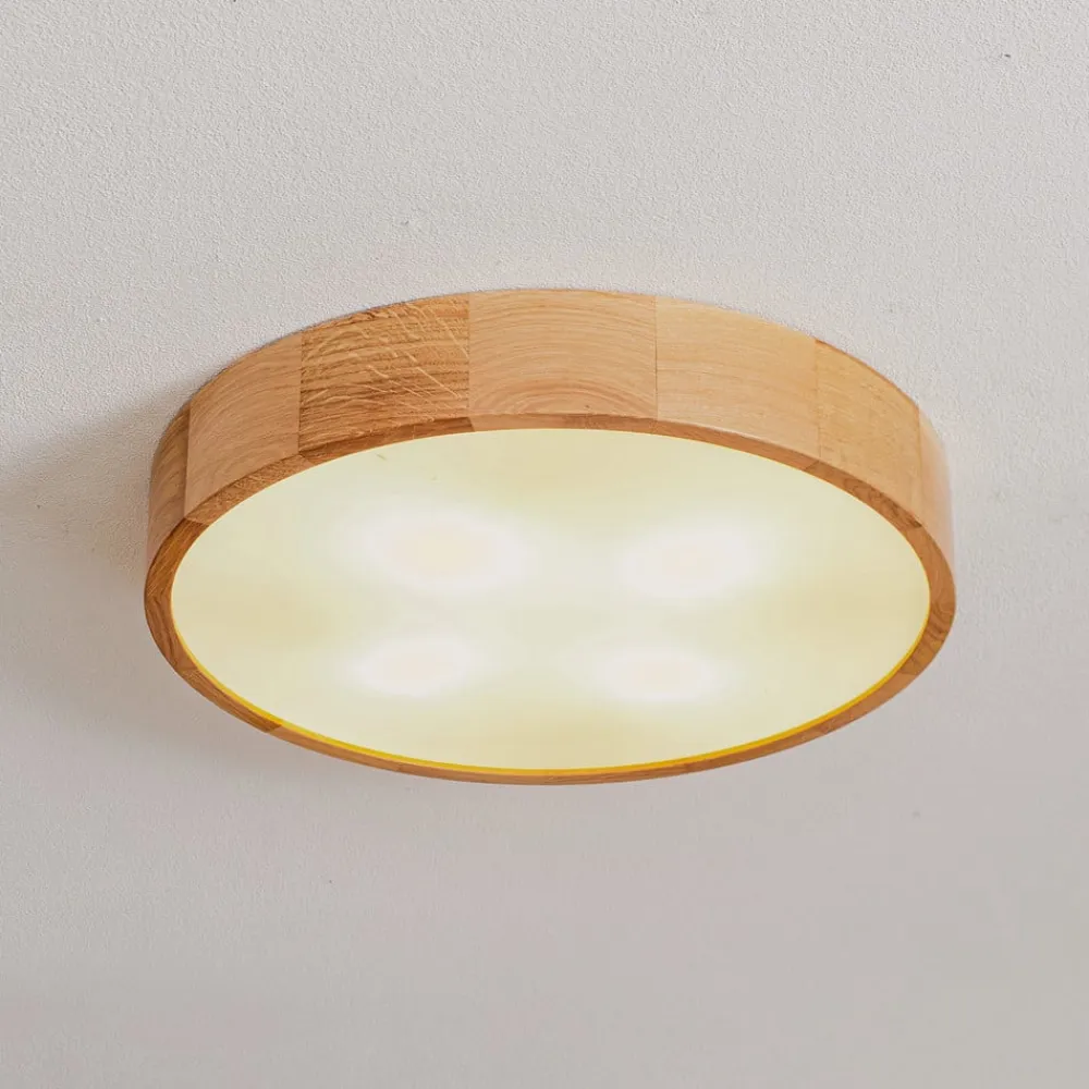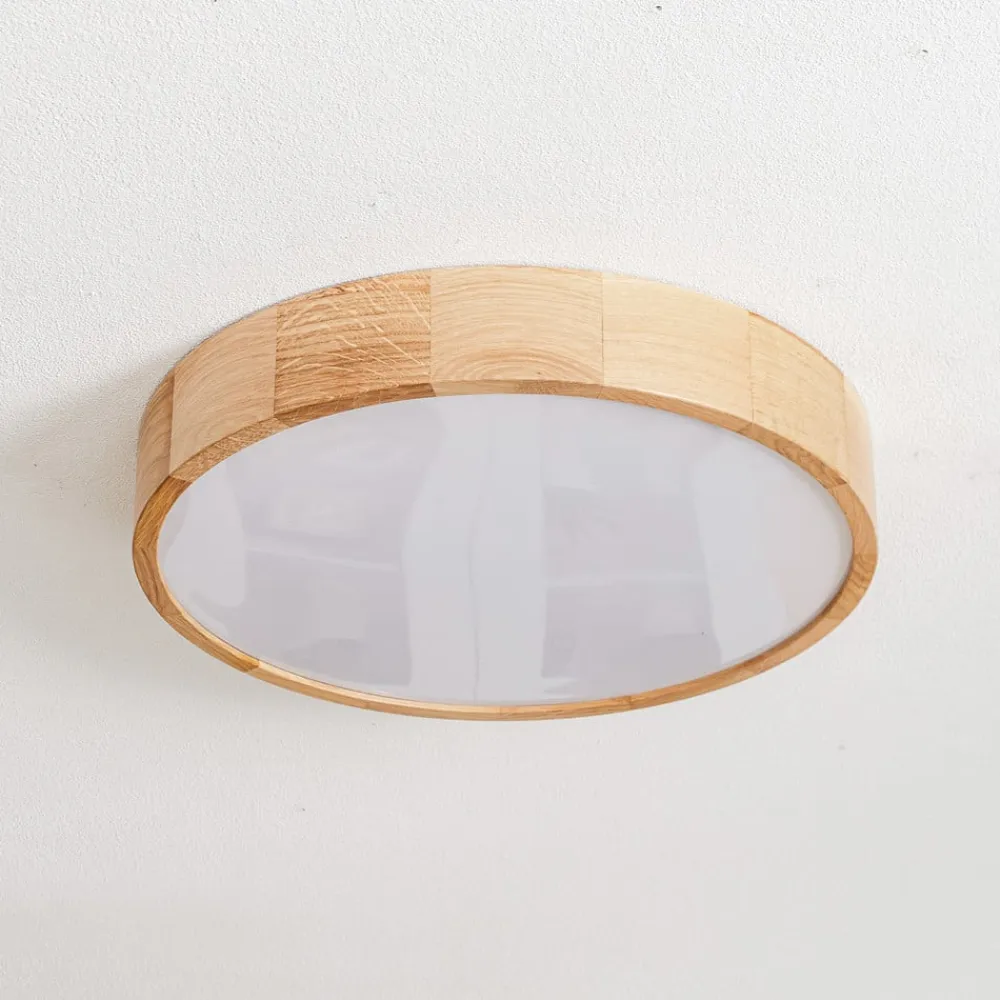 Rund loftlampe Cleo i træ og glas