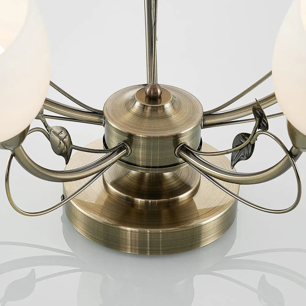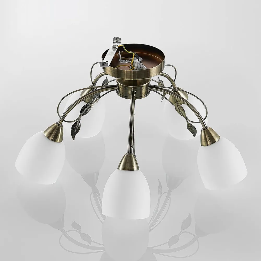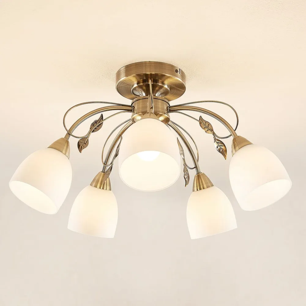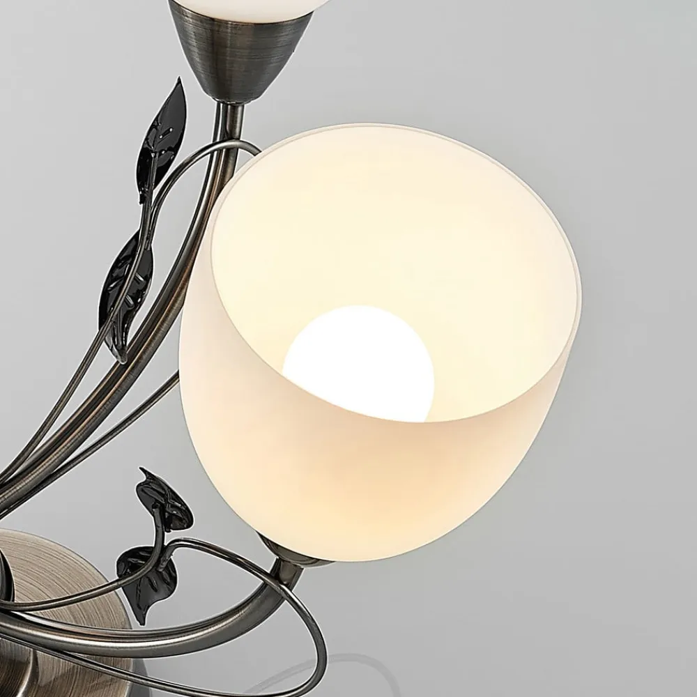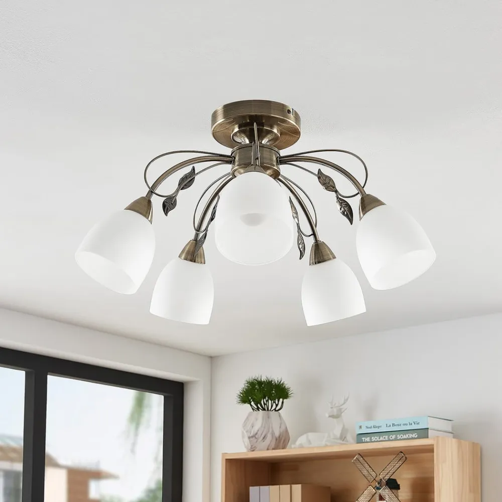 Thaddeus loftlampe i klassisk look med fem glaslampeskærme