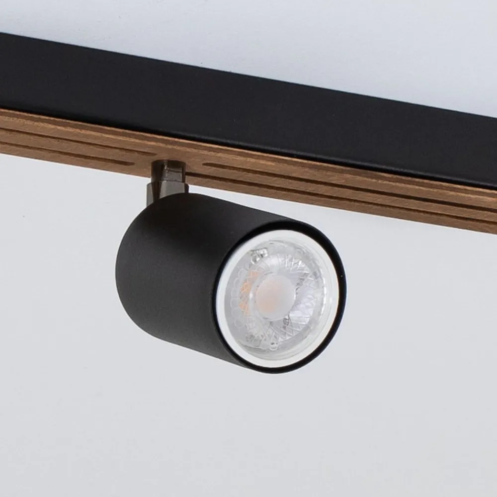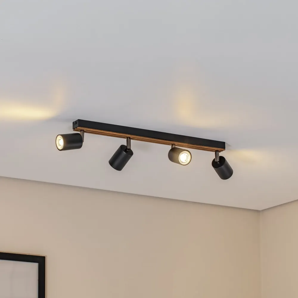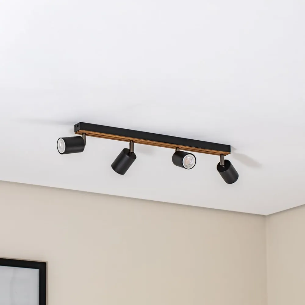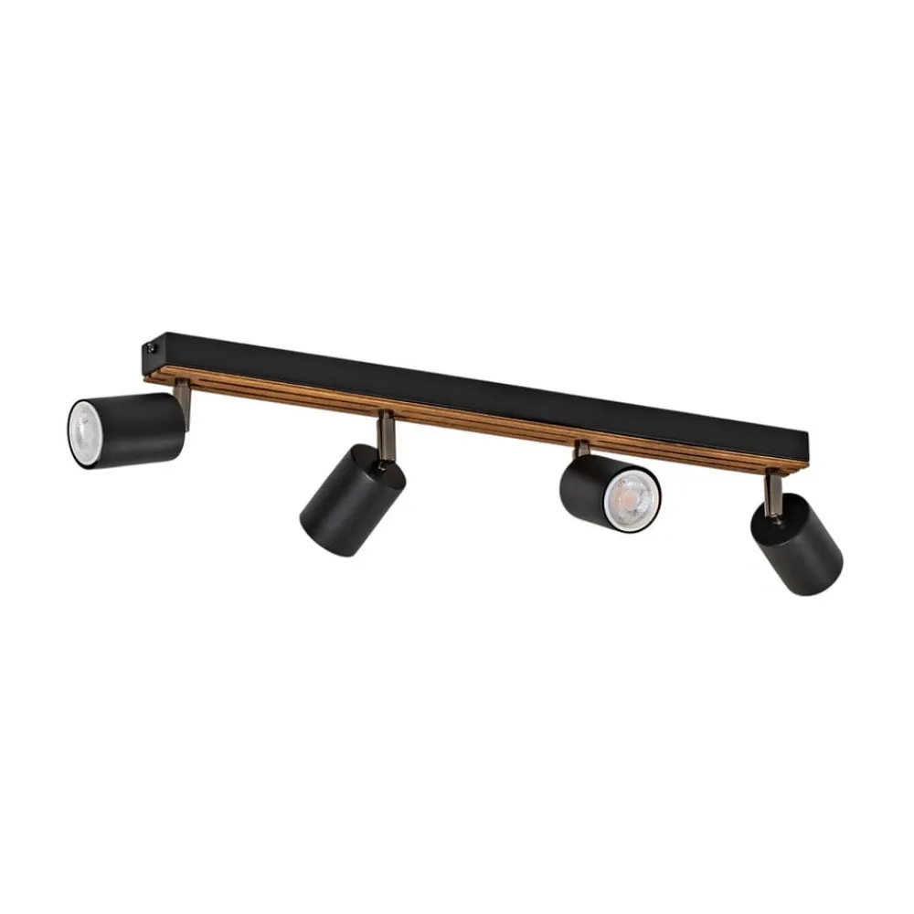 Envostar Tino loftspot forener træets naturlige skønhed med den moderne æstetik i sort stål. Denne harmoniske kombination giver ethvert rum et særligt præg og passer nemt ind i forskellige indretningsstilarter. Konstruktionen med 4 lyskilder sikrer en jævn belysning, der skaber en behagelig atmosfære i både stuen, gangen og soveværelset.