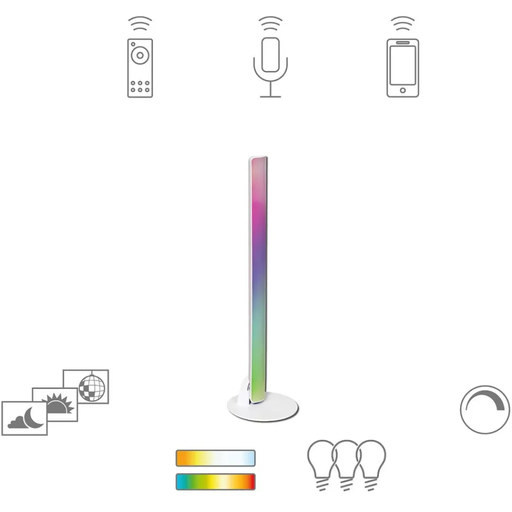 Smart styrbar LED-lysstribe Talpa – alsidig i brug Den moderne LED-lysstribe Talpa er nem at betjene og fleksibel i brug. Uanset om det er som klassisk underskabslampe eller som praktisk og fleksibel standerlampe, kan Talpa bruges næsten overalt. Som klassisk underskabslampe giver den ideelt lys til f.eks. arbejde i køkkenet, da dens hvide lysspektrum kan varieres mellem varm hvid og dagslys. Takket være RGB-LED’erne er der også mulighed for en bred vifte af farver. Talpa tilbyder derfor farvet lys til enhver lejlighed. LED-lysstrimlen kan også bruges som en fritstående lampe, da et aftageligt stativ er inkluderet i leveringsomfanget. Det betyder, at Talpa også kan bruges som et ekstra lys i stuen eller som et stilfuldt lys lige ved siden af sengen. Talpa kan styres med en passende fjernbetjening. Når den integreres i et passende smart home-system, kan den også styres via din egen smartphone eller en passende stemmeassistent. Funktioner/kompatibilitet: – kan styres via en passende tint-fjernbetjening (se tilbehør) – kan styres via app baseret på ZigBee radiostandard 3.0 – kompatibel med Alexa stemmeassistenter (Amazon) – kan integreres i ZigBee-baserede smart home-systemer, for eksempel med Philips Hue, Osram Lightify etc. – individuel stemningsbelysning i hvid (1.800 til 6.500 K) – farvet lys (RGB) – dæmpbar i alle valgte lysfarver