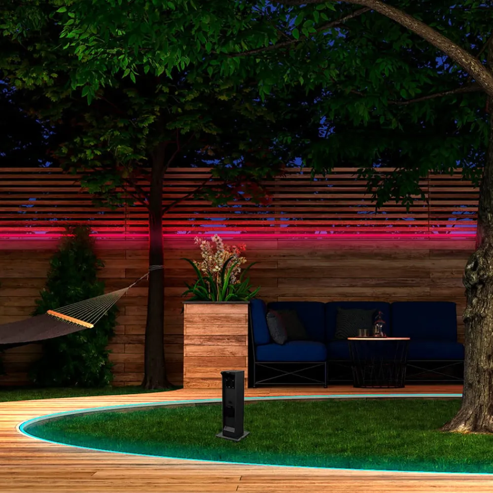 Den smarte stikkontaktkolonne Smart Socket Tower er fremstillet af robust plast, har kapslingsgrad IP44 og passer takket være det mørke og diskrete farvedesign problemfrit ind i mange miljøer. I alt har søjlen fire stikkontakter. To permanente stikkontakter til tilslutning af eksisterende lys eller haveredskaber og to smart-styrede stikkontakter, der kan tændes samtidigt. Styringen er mulig via tint-fjernbetjening (ikke inkluderet, kan købes som tilbehør), via stemmekommando eller via app via et ZigBee-baseret smarthome-system.