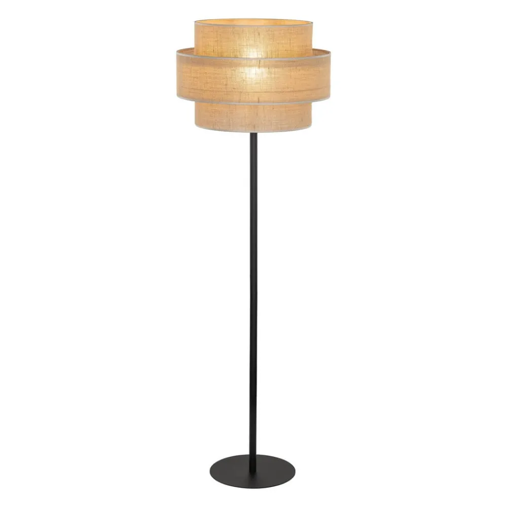Calisto gulvlampe med cylindrisk skærm af naturbrun jute Calisto gulvlampen har et sort stålstel og en cylindrisk skærm, der består af to kugler med forskellig diameter. Deres jute-tekstil giver gulvlampen en hyggelig og naturlig karakter.