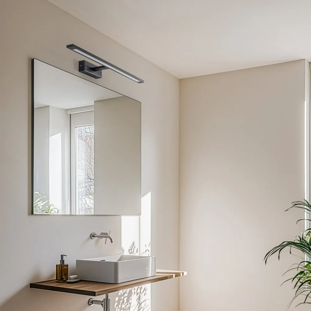 Sort Gallery LED-væglampe til badeværelset med universalhvide LED’er Monteret over et spejl, en håndvask eller en hylde giver Gallery LED-væglampen en generøs og funktionel belysning. Den rektangulære væglampe i metal med sort finish harmonerer perfekt med moderne indretningskoncepter – Kapslingsgrad: IP44