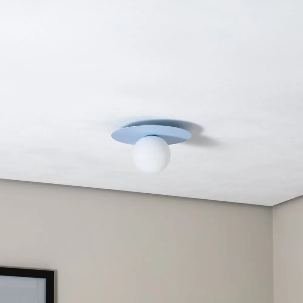 Loftlampen Pixie forener moderne design med den unge boligindretnings lethed. Lampen er fremstillet af højkvalitetsstål og glas og præsenterer sig i en tiltalende lyseblå og opal farve. Det kugleformede design med en diameter på 25 cm gør den til et blikfang i ethvert rum. Uanset om det er i stuen, spisestuen, entreen eller køkkenet – loftlampen Pixie passer perfekt ind i forskellige boligmiljøer og sætter stilfulde accenter.