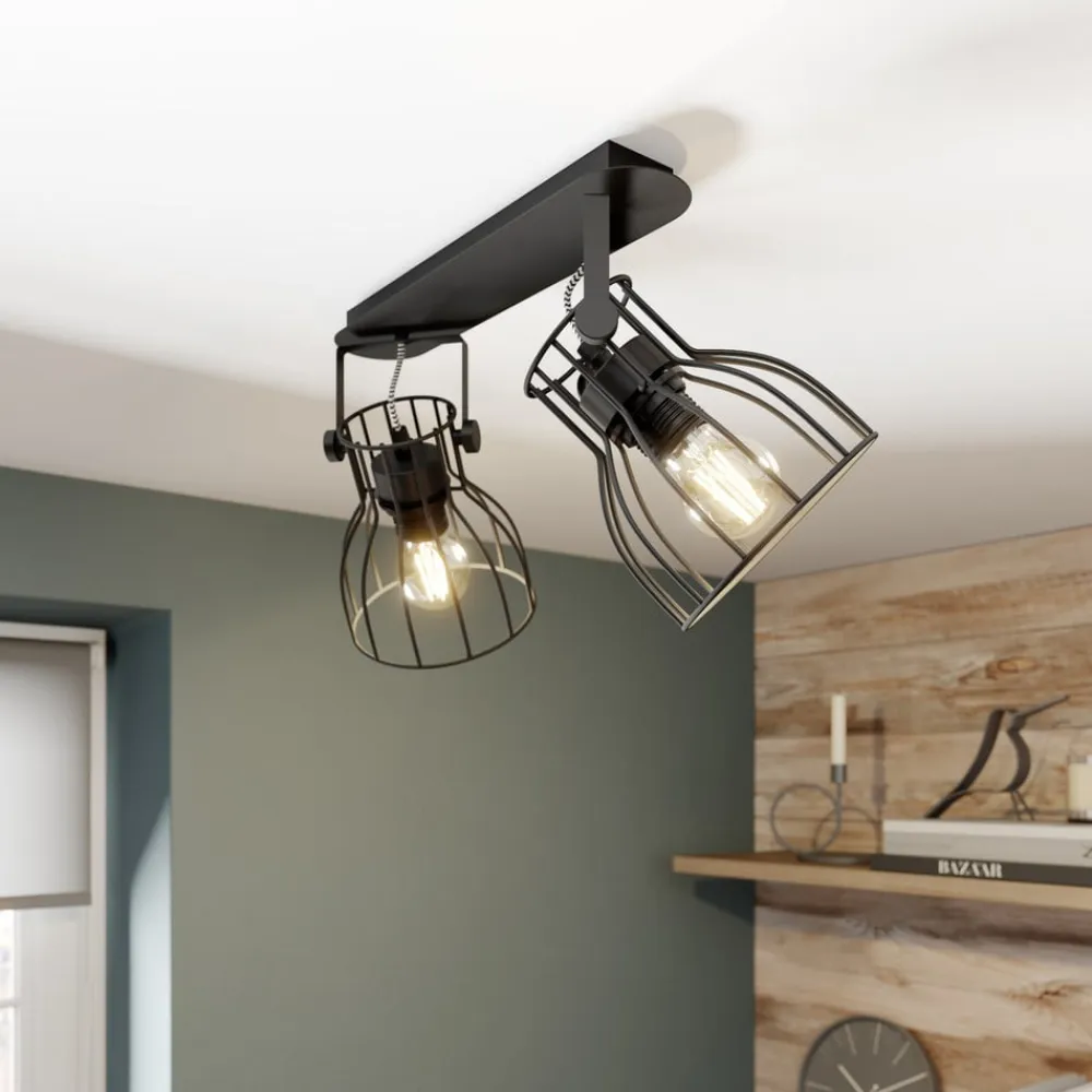 Loftlampen Alano i elegant sort kombinerer moderne design med funktionel belysning. Den er fremstillet af højkvalitetsmetal og passer perfekt ind i forskellige boligområder som stuen, entreen, køkkenet og spisestuen. Konstruktionen med 2 lyskilder giver mulighed for en alsidig lysdesign, der skaber både en hyggelig og inspirerende atmosfære.
