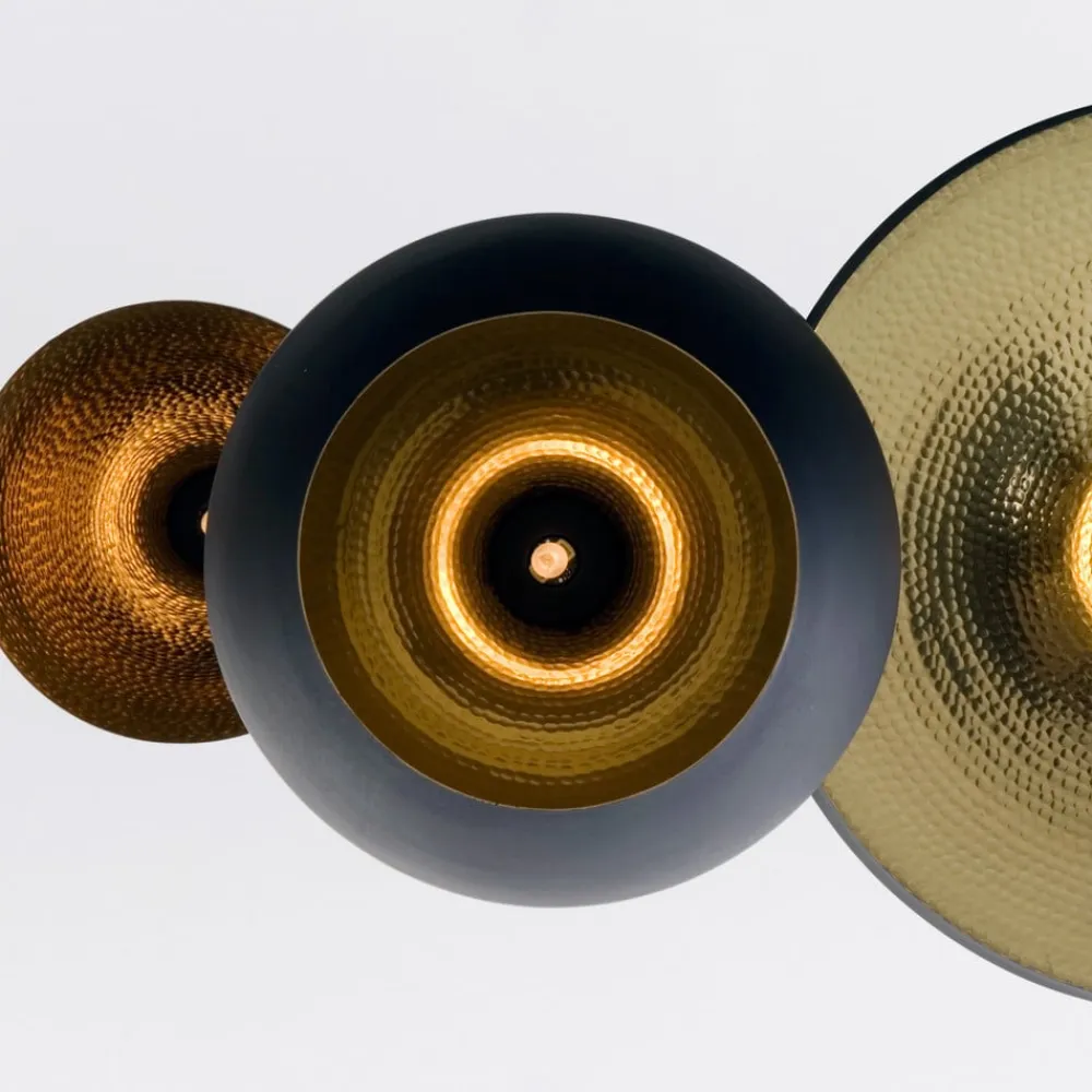 Beat Wide LED-pendel lavet af messing Den brede lampeskærm, der er håndlavet af messingplade, udsender lyset fra de integrerede LED’er nedad i en bred vinkel og oplyser et stort område under armaturet. Den flade skærm på Beat Wide LED-pendlen er håndlavet i Indien, hvor indersiden er banket i hånden. Denne proces skaber ikke kun et meget hyggeligt lys, men gør også hver lampe unik, da der ikke er to, der er 100% ens. Beat-armaturserien blev skabt, da designeren Tom Dixon var involveret i et initiativ i Jaipur, Indien, med det formål at åbne nye perspektiver for indiske håndværkere i regionen. Siden da er lamperne i Beat-serien blevet fremstillet i Moradabad i det nordlige Indien ved hjælp af traditionelt messinghåndværk. Det kan tage op til fire dage for en lampe at blive håndlavet, støbt og derefter håndmonteret indefra.