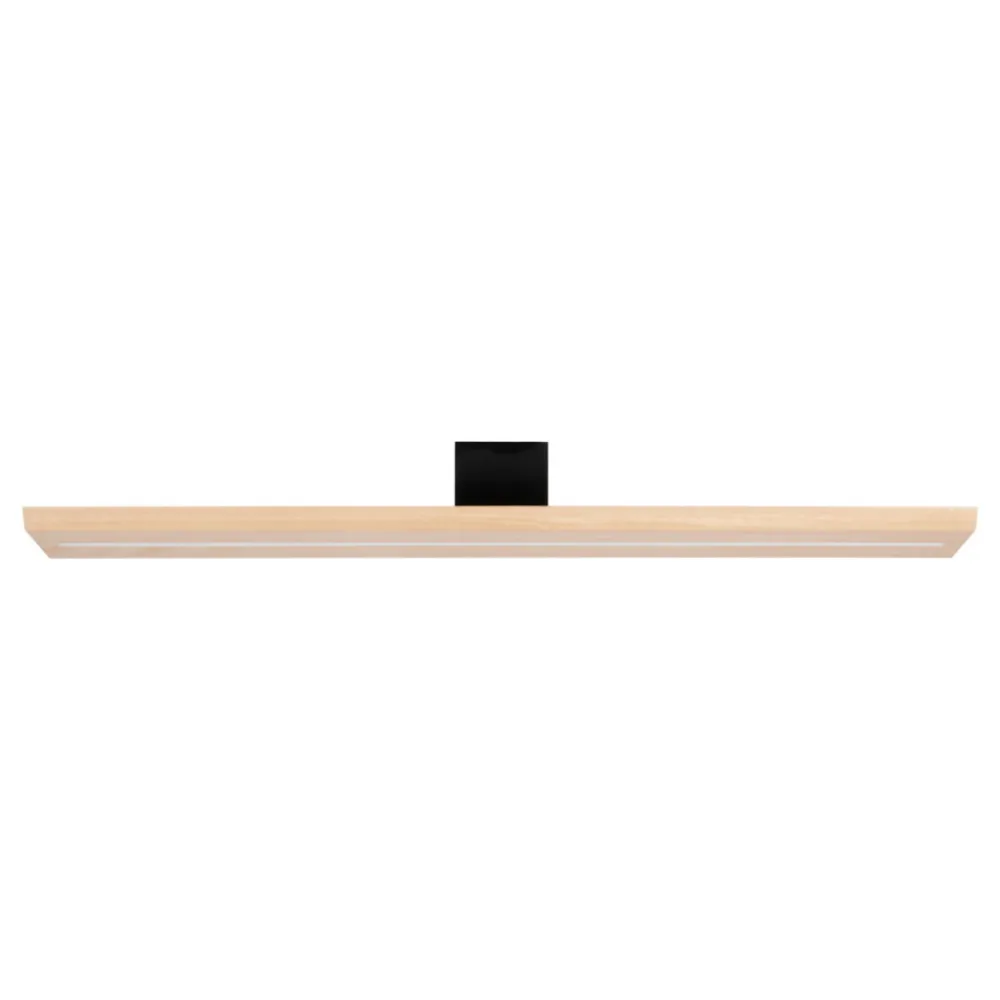Moderne LED-loftslampe Tribe af lyst bøgetræ Loftslampen Tribe giver ikke kun direkte bord- og områdebelysning i moderne stuer, men skaber også en varm, naturlig accent. Den flade, rektangulære krop er lavet af lyst, olieret bøgetræ. Den har en stribe varmhvide LED’er på undersiden. Der er også en rektangulær baldakin lavet af sortlakeret metal – Envostar-armatur – Fremstillet i Europa – Bæredygtig emballage lavet af genanvendelige materialer