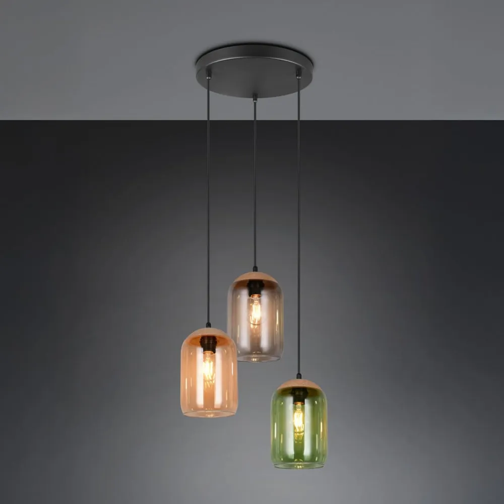 Trio Lighting Cork hængelampe, flerfarvet, Ø 30 cm, 3 lyskilder, glas/kork