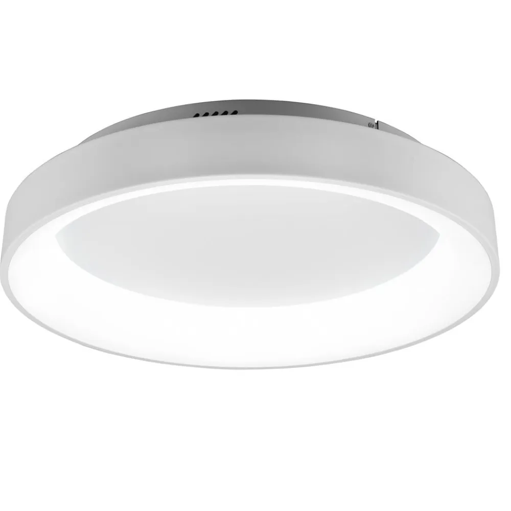 LED-loftlampen Girona kombinerer høj funktionalitet med et reduceret design og passer godt ind i ethvert boligmiljø. Det kan bruges som et moderne armatur i stue- eller spiseområdet eller som en lyskilde på loftet i soveværelset. Da den har en natlysfunktion, er den også velegnet til brug i gangen eller på børneværelset. For at sikre optimale lysforhold på det pågældende sted til enhver tid kan lysfarven justeres trinløst og spænder fra behageligt varmt hvidt lys til klart dagslys. Desuden har Girona en hukommelsesfunktion, som gør, at den sidst anvendte lysindstilling anvendes, når loftslampen tændes igen. Desuden gør den integrerede lysdæmper det muligt at ændre lysintensiteten og tilpasse den til individuelle behov. Lampen betjenes med en fjernbetjening (medfølger i leveringen).