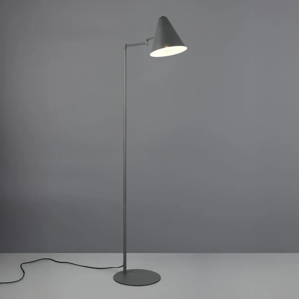 Med sin kegleformede hoved bringer gulvlampen Cosima klassisk design ind i ethvert opholdsrum. Uanset om den står ved siden af sofaen eller som læselampe i soveværelset, passer dens diskrete design sig alsidigt til forskellige rumkoncepter. Den praktiske drejefunktion gør det muligt at rette lampen mod et bestemt sted. Lampen betjenes nemt med den praktiske kontakt. Standlampen Cosima er fremstillet af metal og fås i en neutral antracitfarve. For en moderne og pålidelig belysning anbefales det at bruge en LED-pære. Den tilbyder en høj lyskvalitet, er alsidig og overbeviser med sin jævne belysning. Dens lange levetid og lave varmeudvikling gør den til det ideelle valg til en lang række anvendelsesformål.