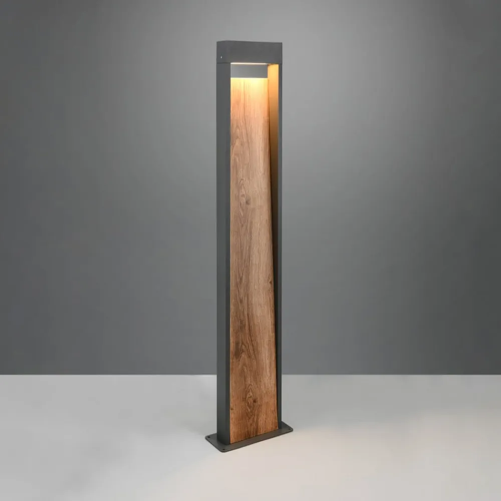 LED-gadelampe SALMON med varmhvidt lys og stilfuldt trælook