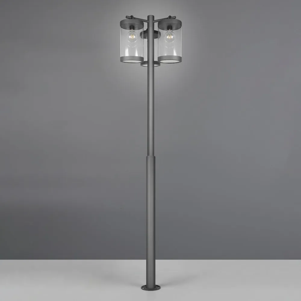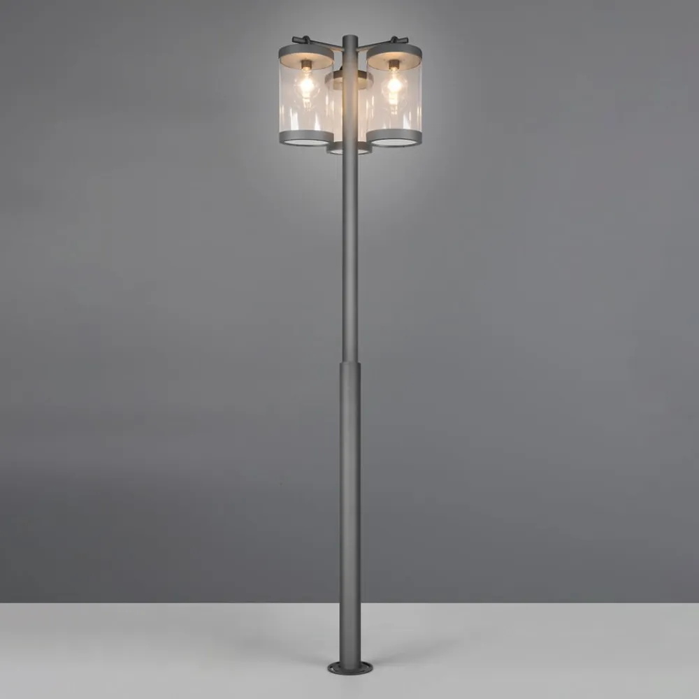 Lygtepælen Sambesi med 3 lyskilder kombinerer stilfuldt design med funktionel robusthed. Den er fremstillet af højkvalitets trykstøbt aluminium og er en holdbar løsning til udendørs belysning. Den antracitfarvede overflade giver lampen en tidløs elegance, der passer harmonisk ind i forskellige arkitektoniske omgivelser. Med sin kapslingsgrad IP44 er lampen optimalt beskyttet mod indtrængning af vand og støv, hvilket gør den til det perfekte valg til udendørs brug.