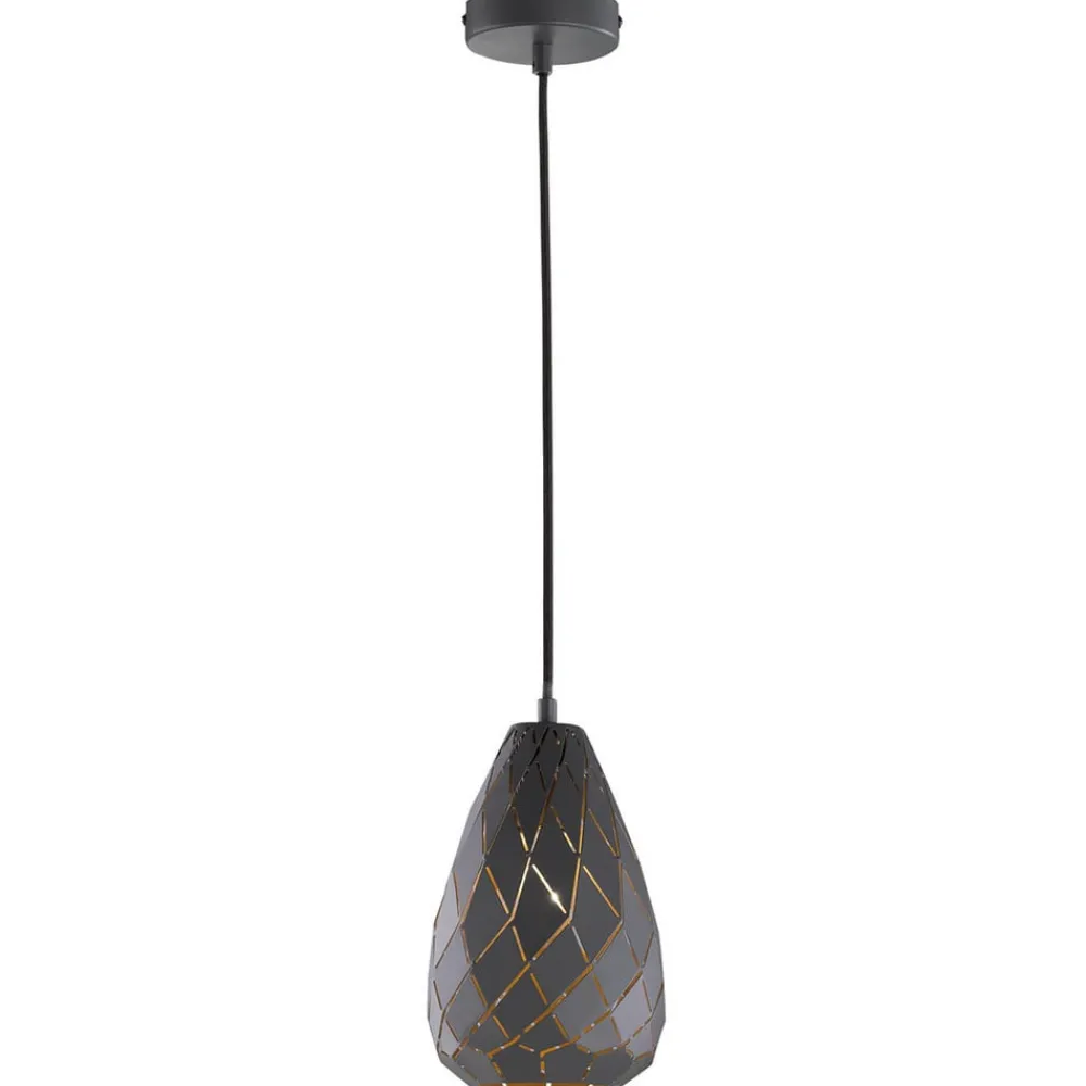Ved første øjekast virker den enkel, men alligevel imponerer denne attraktive model med sit usædvanlige design. Den formskønne pendellampe Onyx er lavet som en præcist slebet ædelsten og imponerer med en luksuriøs kontrast mellem det elegante ydre i antracit og det noble guld på indersiden. Samtidig virker indersiden i bladguld som en praktisk reflektor, der øger lysudbyttet.