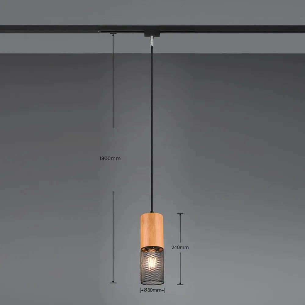 Tosh hængelampe med burskærm og trædetalje til DUOline skinnesystem DUOline 2-faset skinnesystem lover den perfekte belysningsløsning til alle rum. Takket være de fleksible muligheder kan belysningen i høj grad tilpasses. To lysgrupper kan tændes eller dæmpes separat med kun én strømtilslutning. Armaturerne kan nemt placeres hvor som helst på skinnen, og den moderne Tosh pendellampe kan også monteres efter behov. Dens elegante udseende, som harmonisk kombinerer to kontrasterende elementer, er ideel til accentbelysning i opholdsrummet. Tosh har en slank, cylindrisk krop med kompakte dimensioner. Den består af en trædetalje og en åben metalskærm, der er dekoreret som et bur med mange huller, så lyset kan stråle frit ud i rummet med et smukt mønster