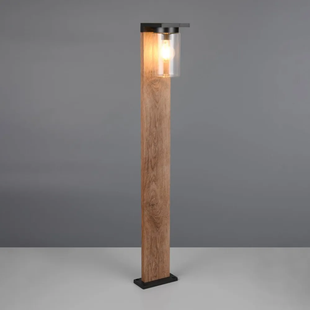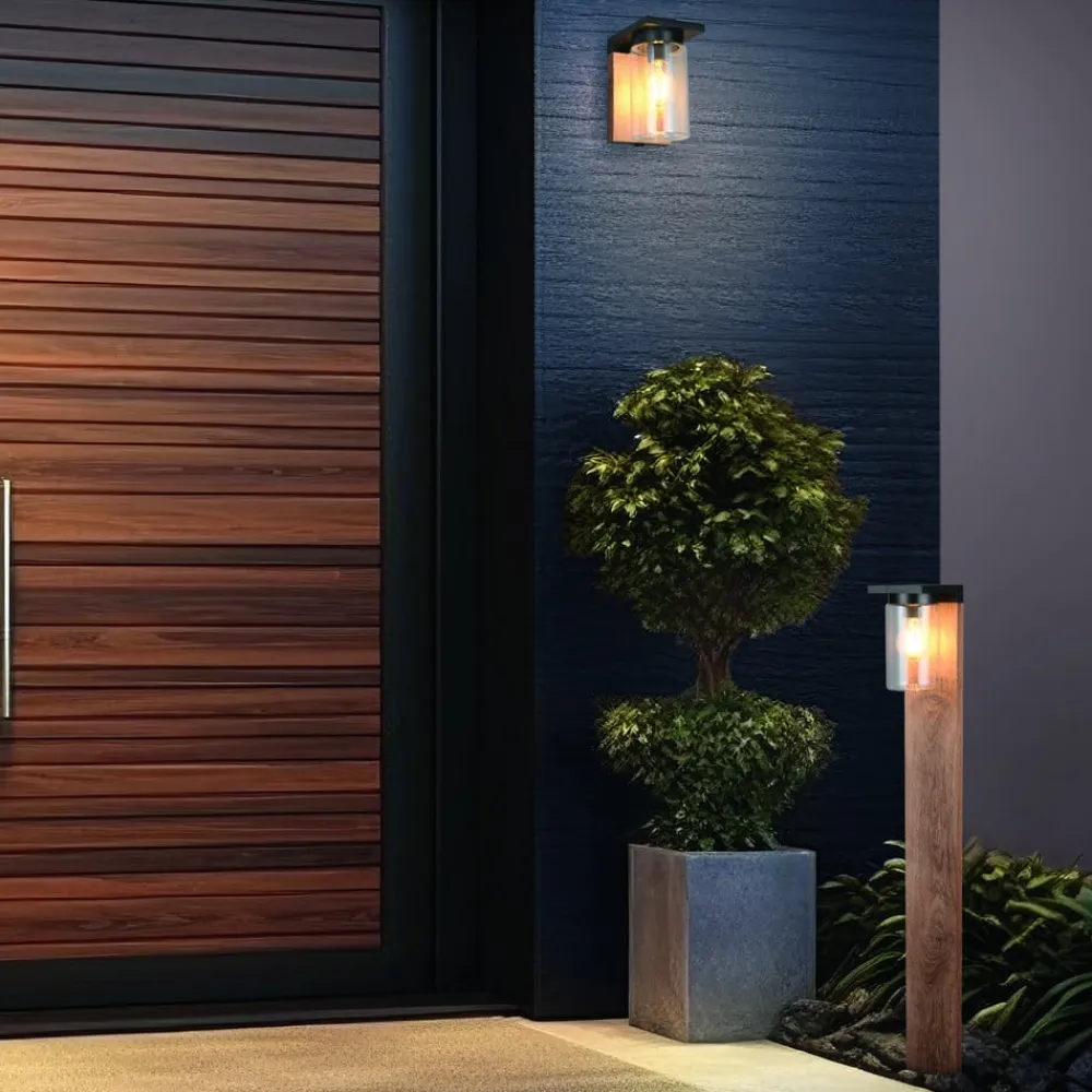 ARDILA vejlampe kombinerer moderne design med et tiltalende trælook og materialer af høj kvalitet som aluminium og glas. Takket være kapslingsgrad IP44 er den optimal til udendørs brug og tilbyder pålidelig beskyttelse mod stænkvand og fremmedlegemer. Dens klare formsprog passer harmonisk ind i moderne udendørsarealer og sætter stilfulde accenter.