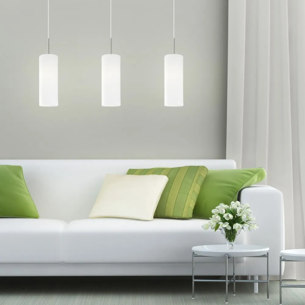 Charmerende Troy-pendel med tre lampeskærme Troy-pendlen i hvid og mat nikkel imponerer med sin enkelhed og elegance. De tre aflange, hvide glasskærme virker diskrete, men skaber en dygtig effekt i kombination med en moderne stue. Denne model er et ægte blikfang og en moderne lyskilde, især som lys over en disk eller et spisebord.