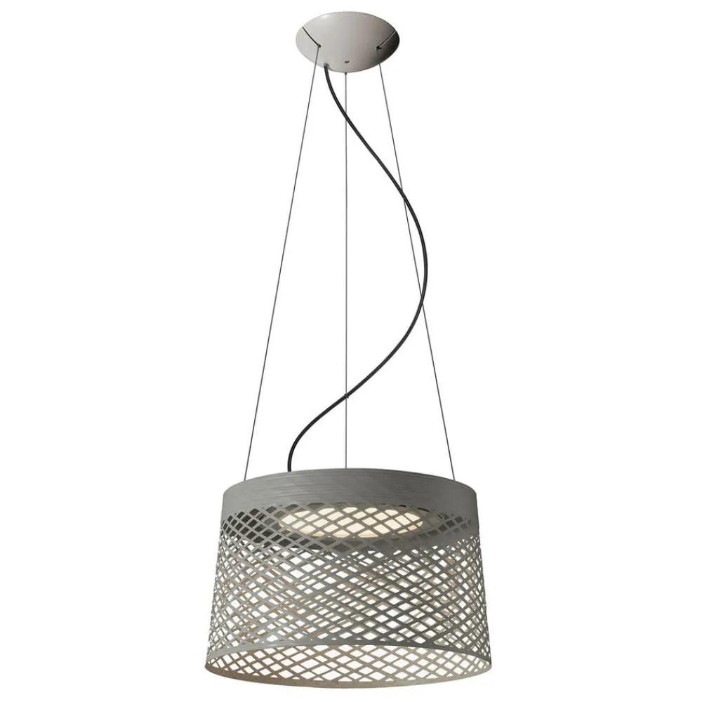 Foscarini Twiggy Grid – LED-pendel til udendørs brug, IP44 Kendetegnet for Twiggy Grid LED-pendlen fra Foscarini er den håndlavede lampeskærm med mesh-look. I en særlig proces, som Foscarini selv har udviklet, vikles et tyndt bånd af glasfiberkompositmateriale omkring en roterende cylinder. Mens skærmens øvre og nedre kanter er forstærket af et ekstra bånd, er resten af skærmen meget delikat, hvilket giver armaturet en meget åben og let karakter generelt. LED-lyset imponerer med meget god farvegengivelse (CRI>90) og udsendes nedad over et stort område gennem en satiniseret diffusor placeret i den øverste del af skærmen. Som pendel over et altan- eller terrassebord kan Twiggy Grid give en direkte og meget klar omgivelsesbelysning. Men dette designerobjekt gør også et umiddelbart indtryk indendørs – f.eks. som spisebords- eller køkkenbordsbelysning. Marc Sadler er industriel designer, og efter den første udgave af Twiggy-serien i 2006 har han vovet sig ud i en ny udgave med Twiggy Grid-versionen til udendørs belysning. Han eksperimenterer altid med nye materialer og produktionsprocesser, og Twiggy Grid er endnu en gang resultatet af hans omhyggelige researcharbejde.