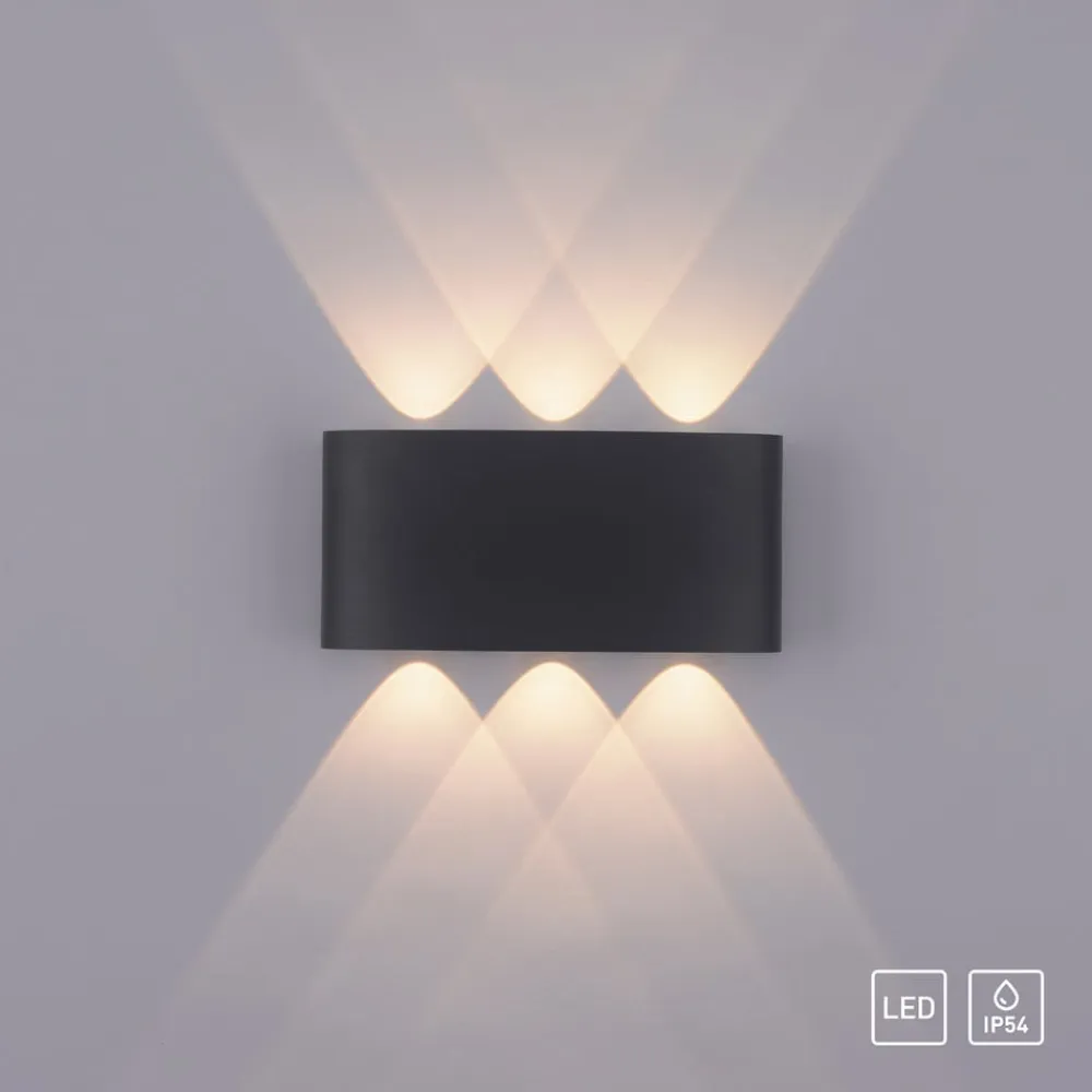 Udendørs LED-væglampe Carlo med opad- og downlight, sprøjtvandsbeskyttet