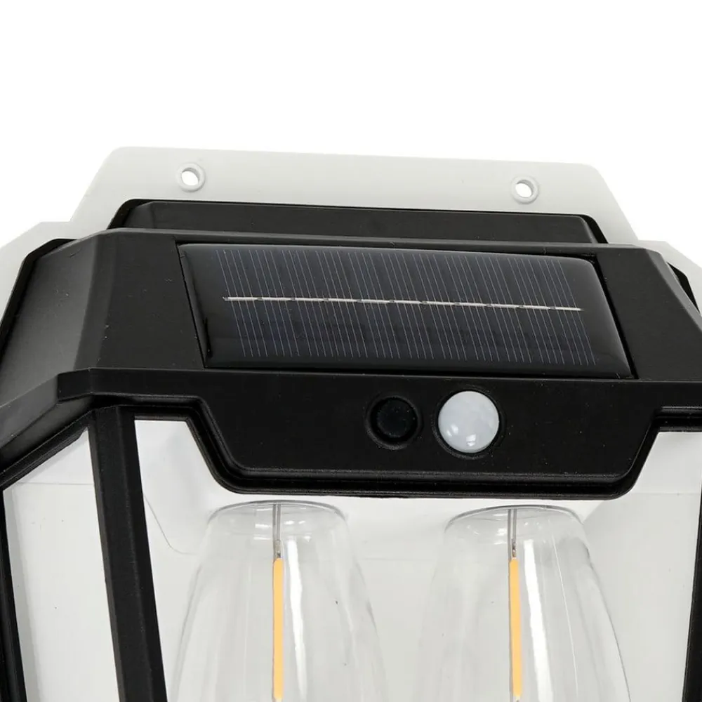 LED-udendørs væglampe Filo Double giver lys uden strømforbindelse. Denne lampe er fremstillet af højkvalitets polycarbonat og har ikke kun et flot design i sort og transparent, men er også robust takket være kapslingsgrad IP44, så den uden problemer kan monteres udendørs. De integrerede LED-lyskilder giver et energibesparende, varmhvidt lys. Lampen er udstyret med dagslys- og bevægelsessensor. Den tændes ved mørkets frembrud (20 lumen) og så snart der registreres bevægelse, tændes fuld lysstyrke (300 lumen).