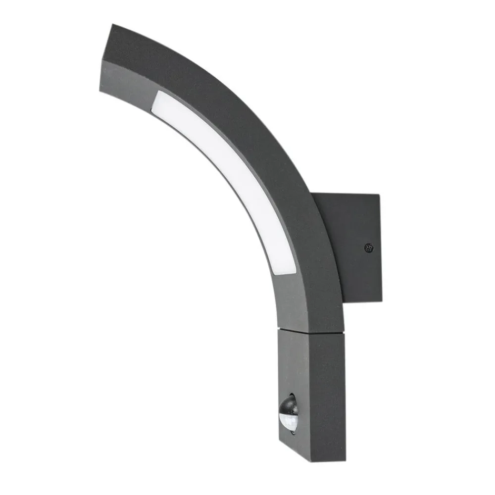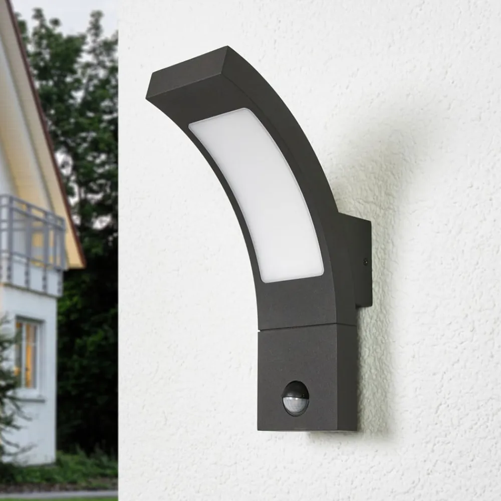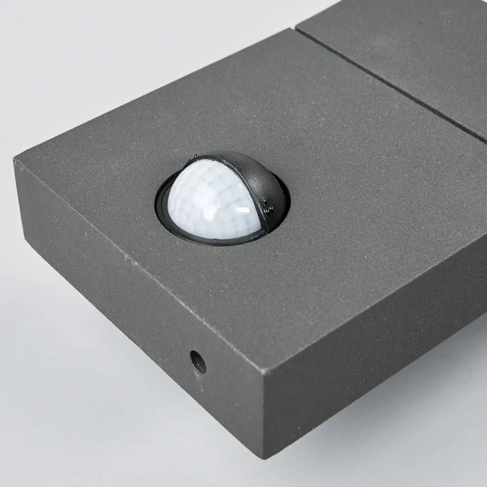 Lucande udendørs LED-væglampe Juvia, sensor, 27 cm, grå, IP54
