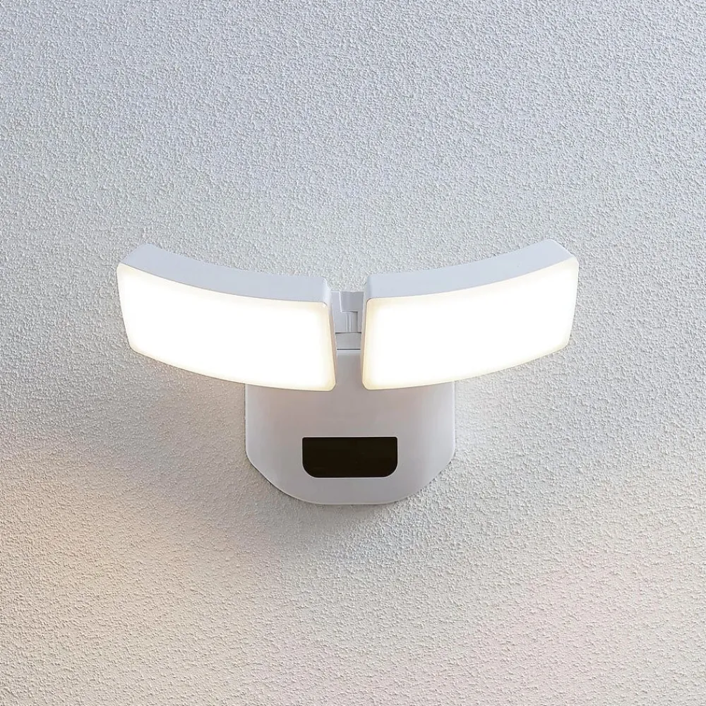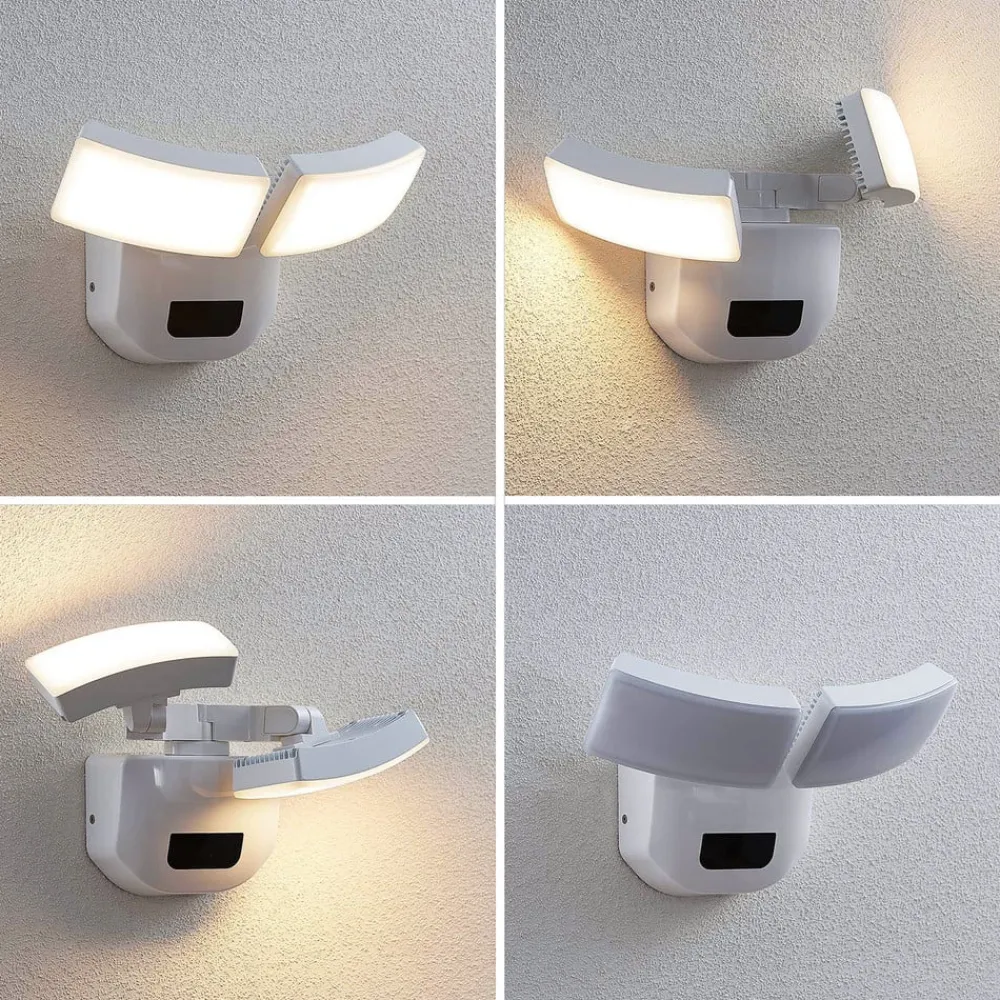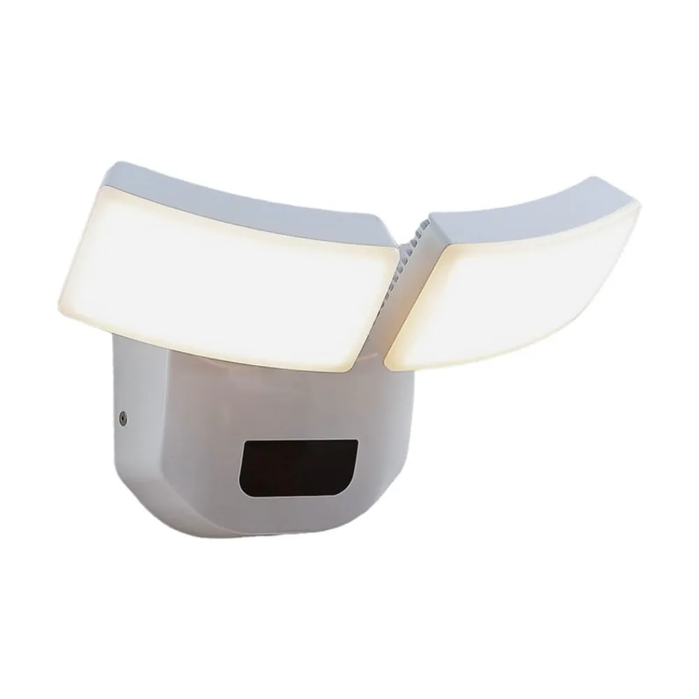 2 lyskilder LED udendørs vægspot Nikias med sensor og bevægelige lampehoveder, saltvandsresistent Denne LED udendørs vægspot har en hvid overflade og er kendetegnet ved sit høje funktionsniveau. De to lampehoveder kan drejes og svinges (90° horisontalt/180° vertikalt), så lyset kan justeres præcist. Der er også integreret en bevægelsessensor, som betyder, at lyset reagerer på bevægelse i omgivelserne og tænder med det samme, når der er brug for lys. Lyset er saltvandsresistent og har en IK06-slagstyrke, hvilket gør det særligt robust. Sensordata: – Rækkevidde 12 m x 6 m – Lysvarighed justerbar (5 s/90 s/5 min/15 min) – Registreringsvinkel 150°