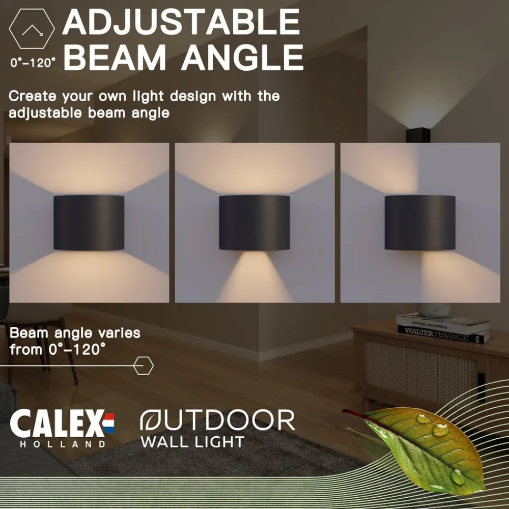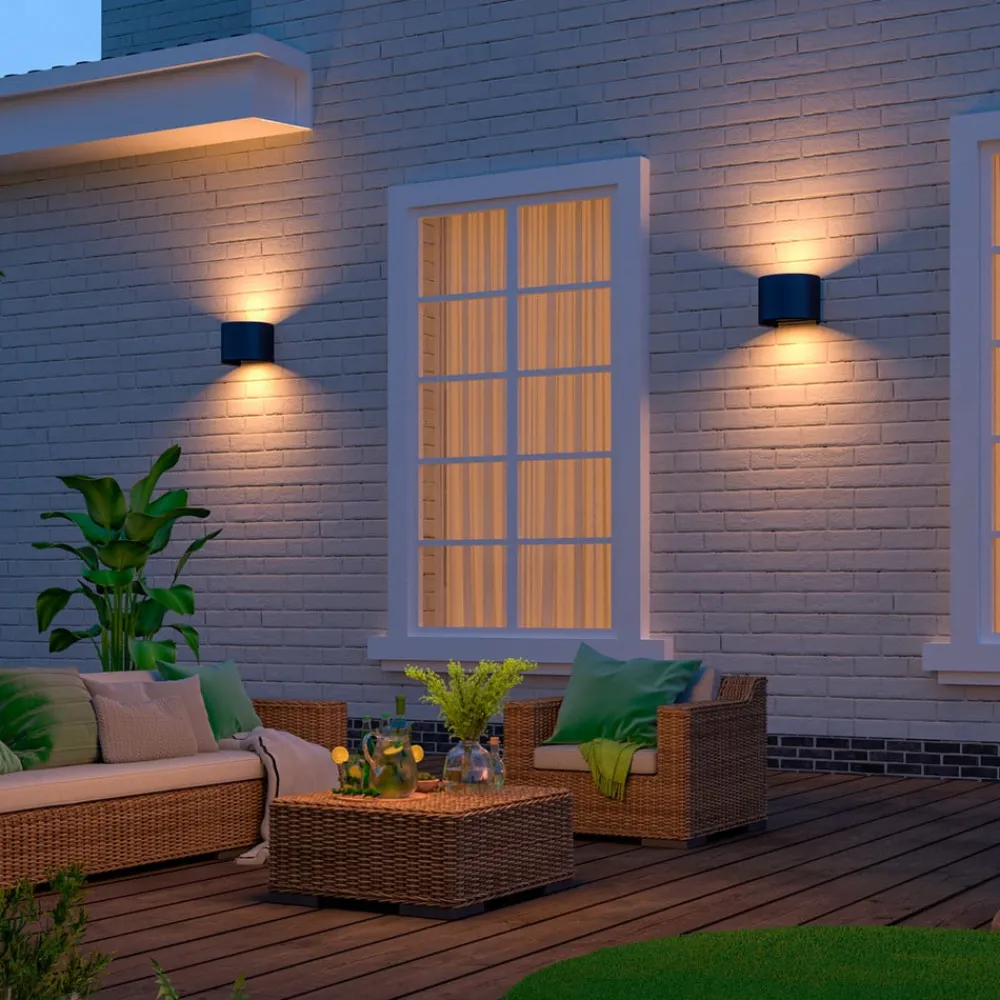 Udendørs væglampe Oval er beregnet til moderne accent- og orienteringsbelysning på facader og indgangsområder. Huset er fremstillet af aluminium og plast og er udformet som en udskæring af en cylinder og har en ensfarvet finish. Bag plastdæksler er der integreret to varmhvide LED-lyskilder, hvis lys udsendes opad og nedad.
